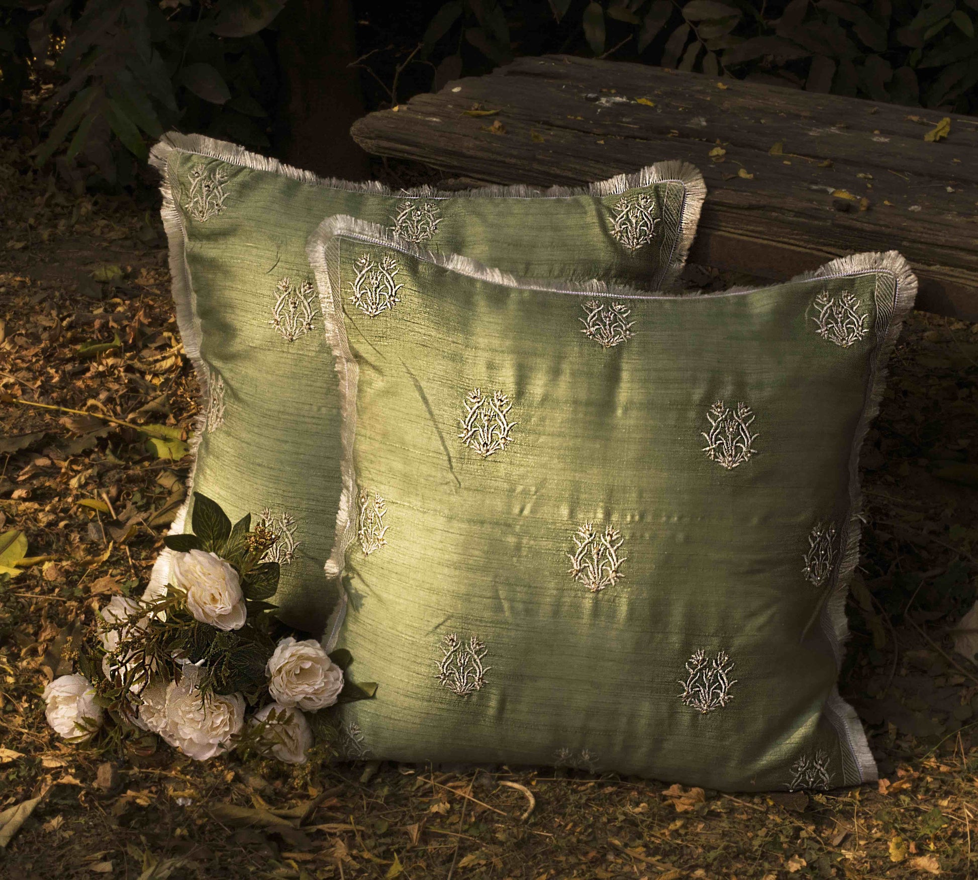 Add elegance & charm as you introduce the 'Anahi' Emerald Cushion from the house of Sammsara. The intricate design of this hand embroidered cushion features a handcrafted floral design.