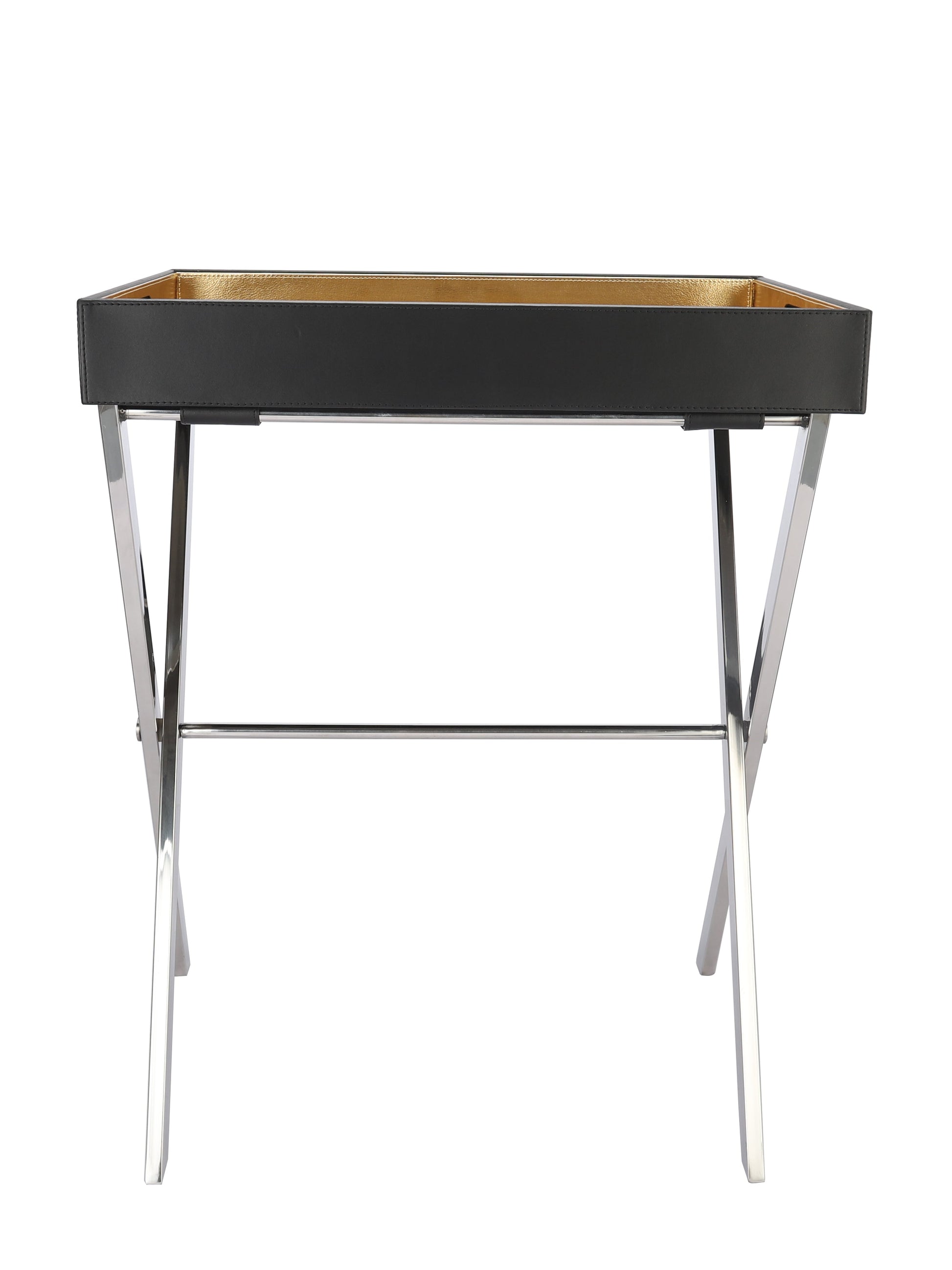 Be a trendsetter with our beautifully handcrafted 'Aster Bumble Bee' print Gold Butler Tray Table. The artistic & luxurious lines of this Butler tray table will enhance the look & feel of any room. The PU Leather & Glass Printed tray top is easily detachable, offering versatility & convenience. Use in a corner to display treasures or the detachable tray can be used by itself. The steel table base is foldable & can easily be stored.