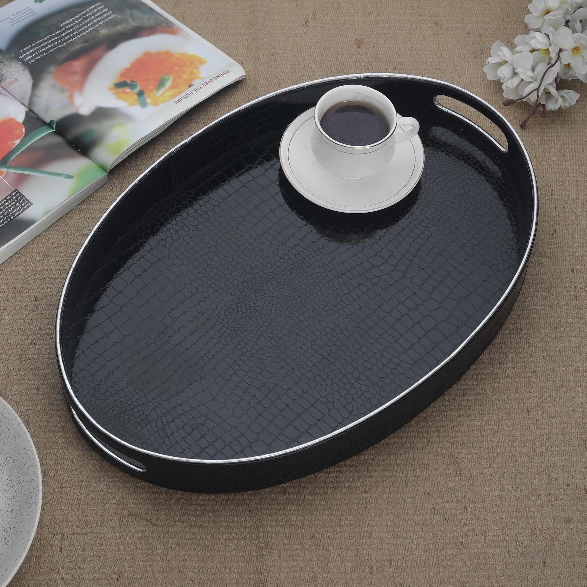 Aurora Black & Silver Oval Tray