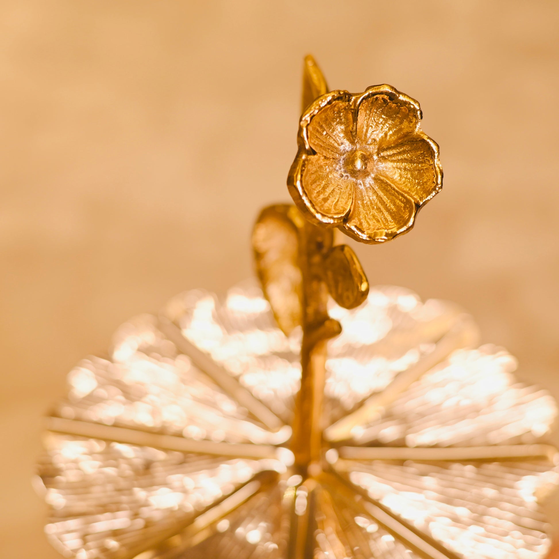 The artistic & eye-catching design of this stunning double floral platter/pastry/mithai stand make it a truly ornate addition for any living/dining space. It's intricate handcrafted floral designs along with the golden branch shaped handle really make it stand out. Works well as a platter or as an accent piece.
