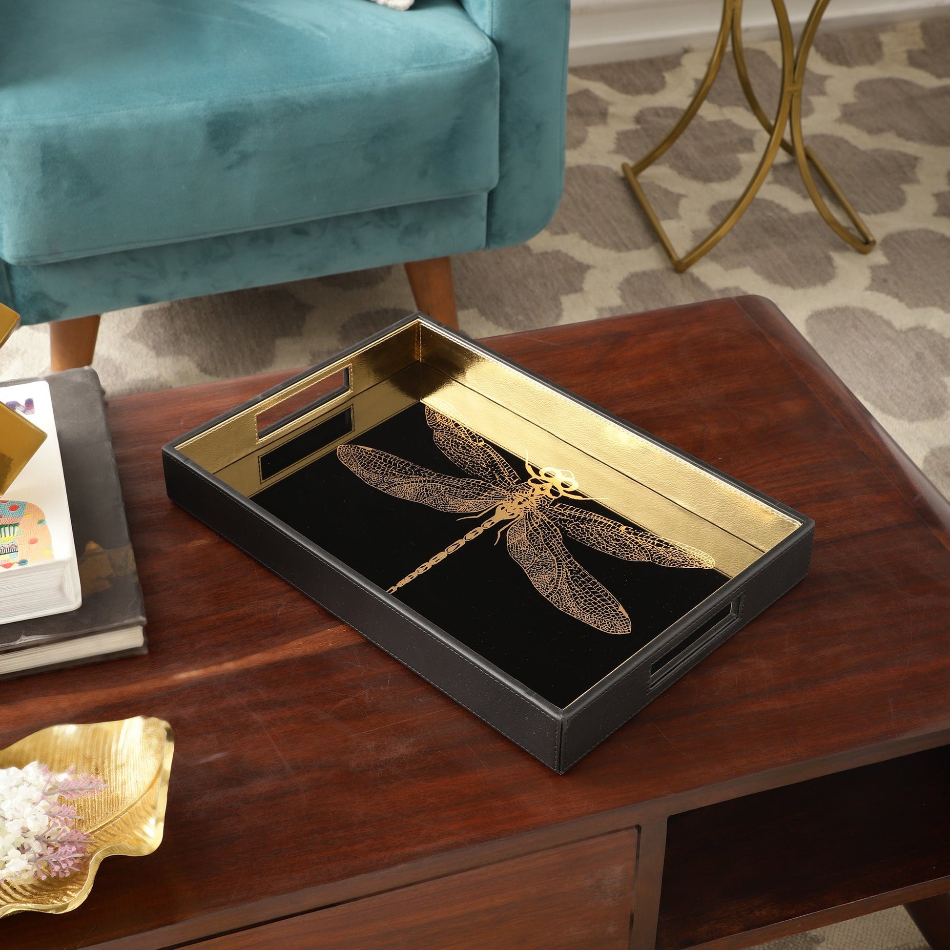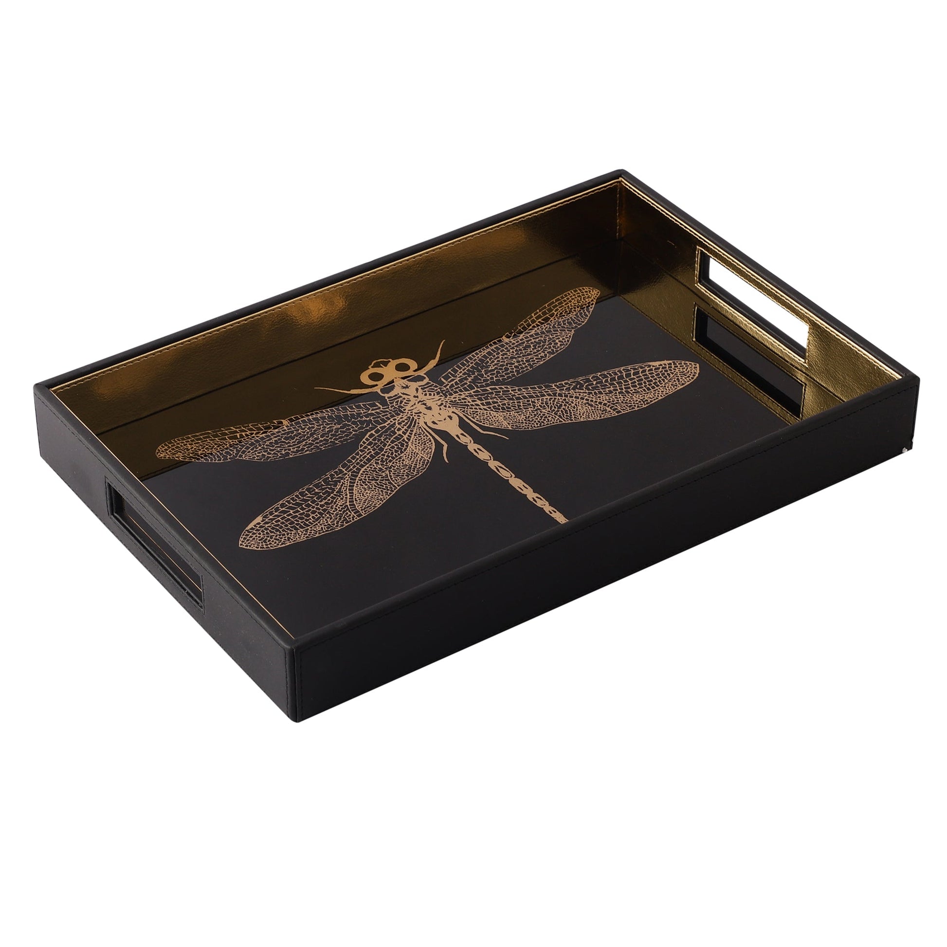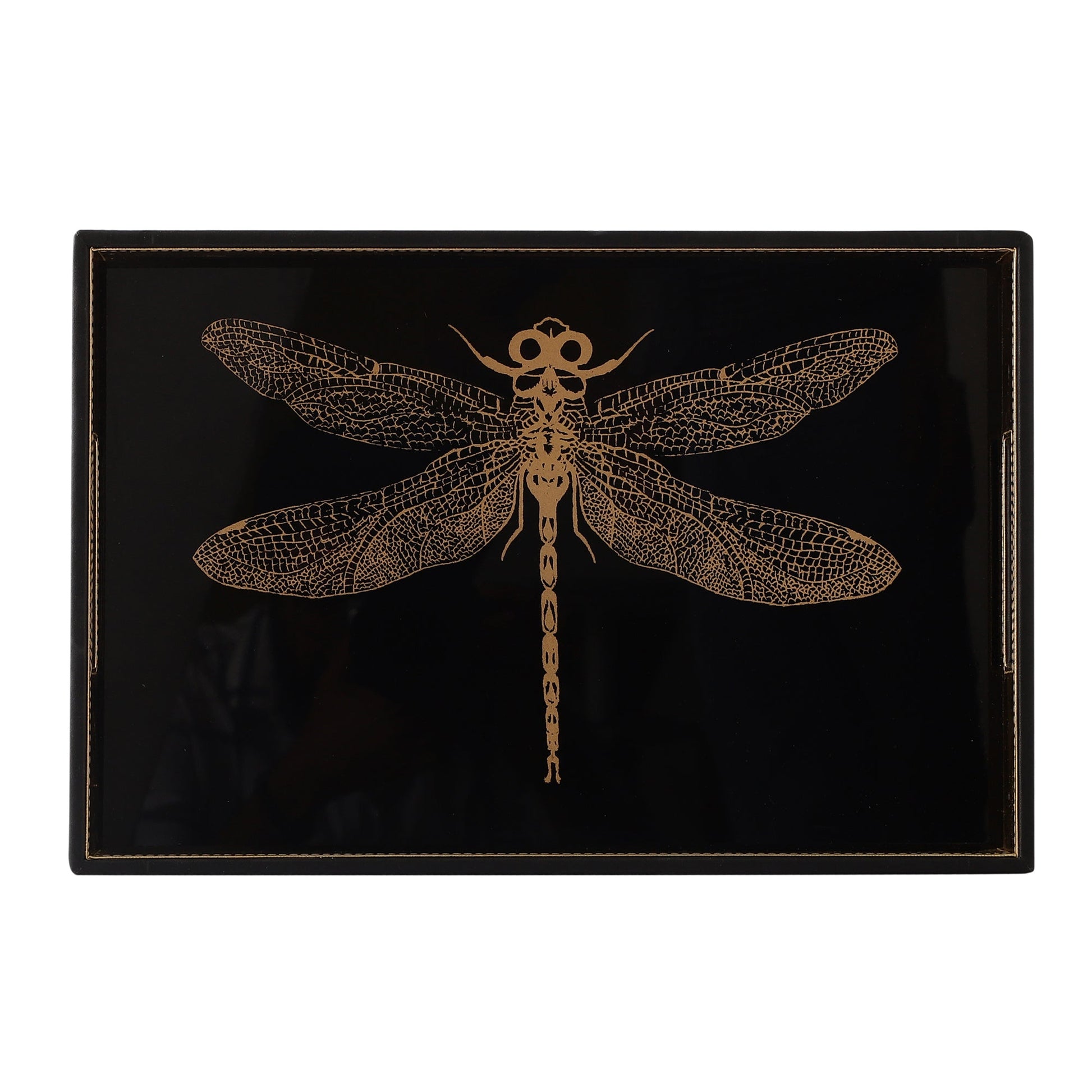 Azalea Dragonfly Black & Gold Rectangle Tray