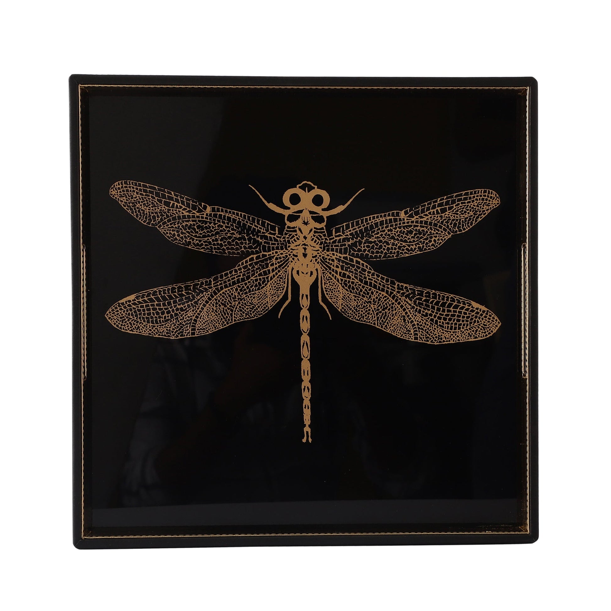 The artistic & eye-catching design of this stunning piece make it a truly ornate addition for any living space. It's delicate handcrafted Gold Dragonfly pattern on glass really make it stand out. Works well as a serving tray or as an accent piece.