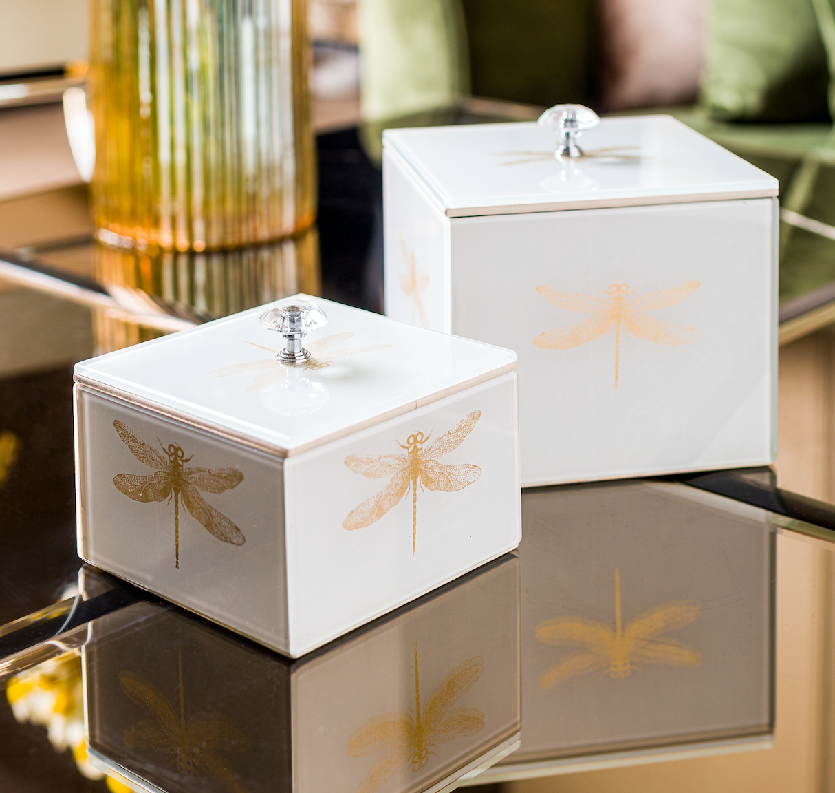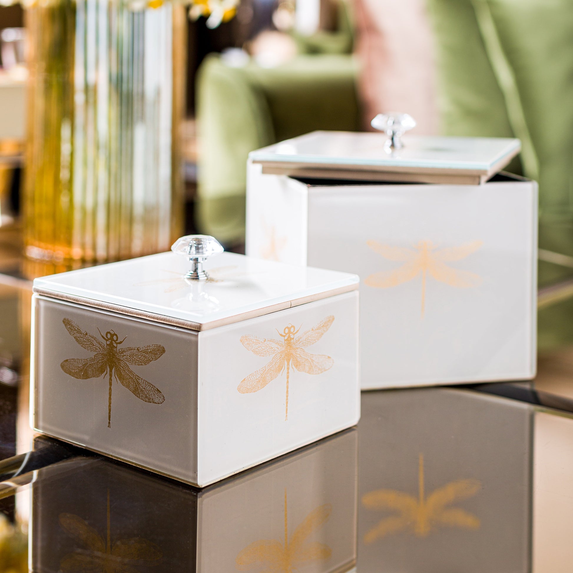 Azalea Dragonfly Decorative Square Jars Set of 2
