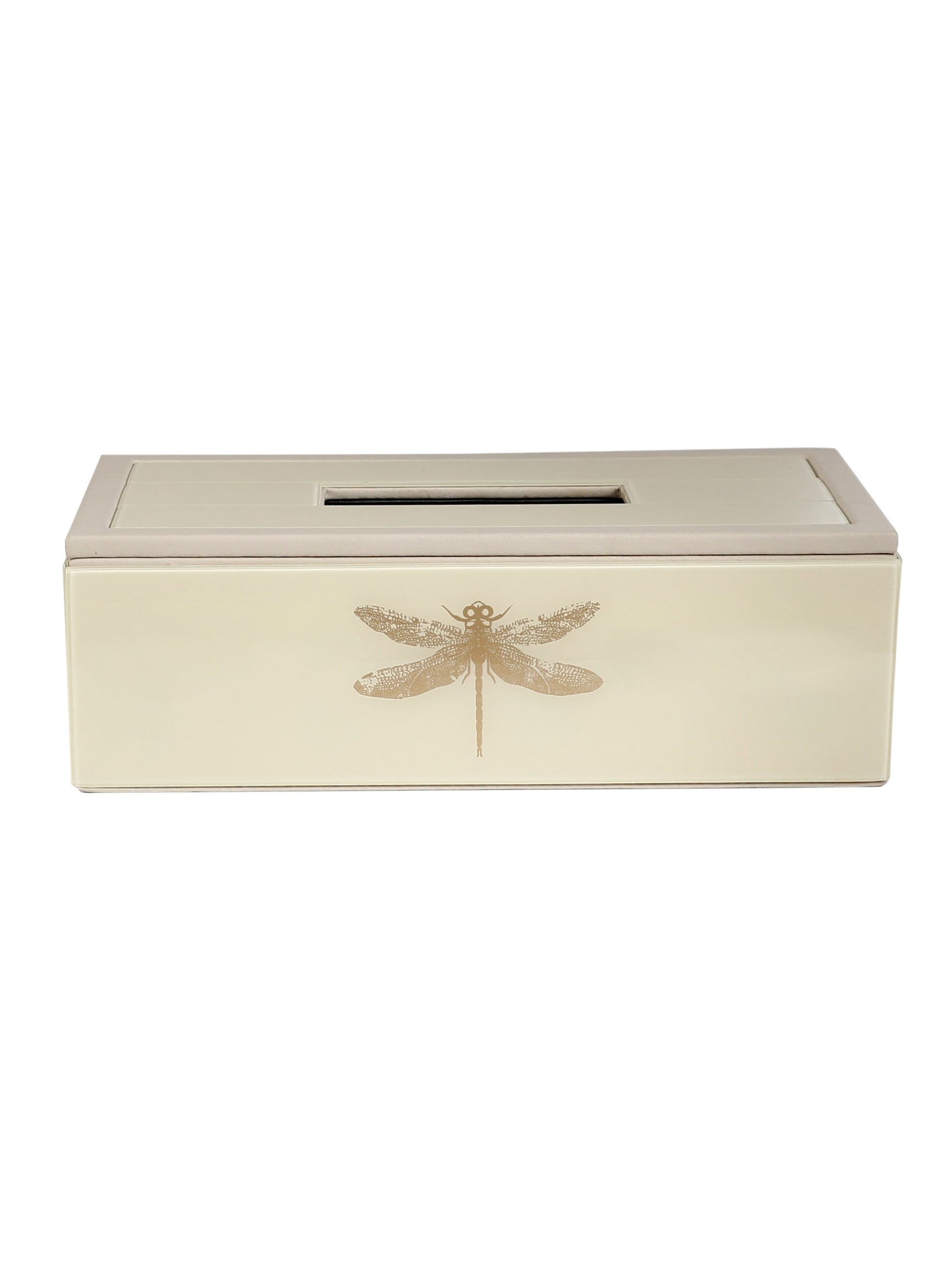 Perfect for adding sophistication to your tissue and napkin storage and dispensing needs throughout the house. This designer dragonfly patterned glass printed tissue box is to sure to add charm to your living space. The slit is wide and placed at the center of the box for more convenience.Tissue holders are ideal for home (dining room, bedroom or bathroom), office and car automotive use.