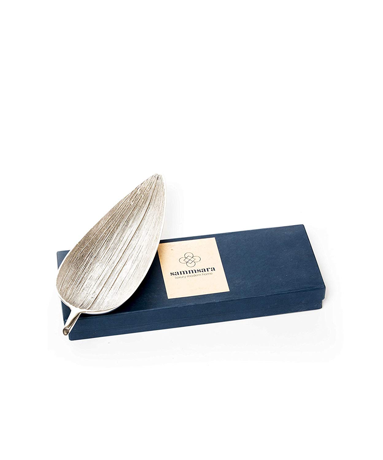 Beauty in simplicity with natural textured lines running through this nickel-plated leaf. Food safe for you to serve cold starters or nuts.