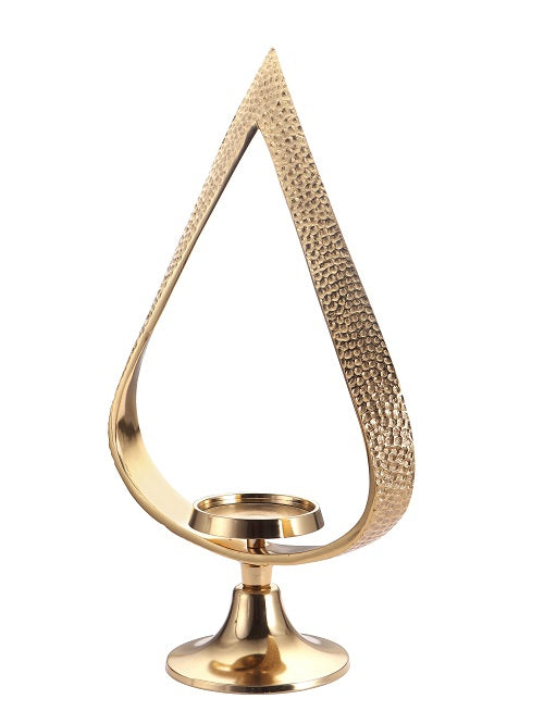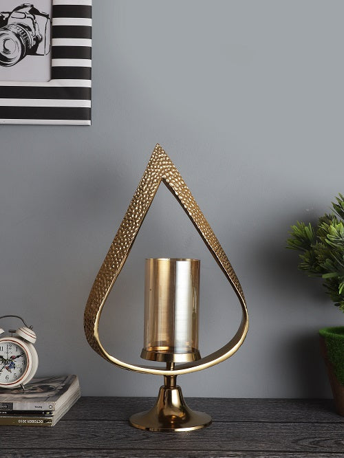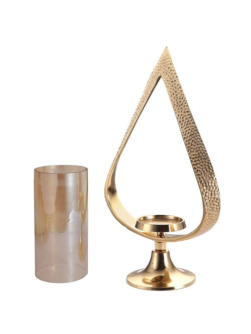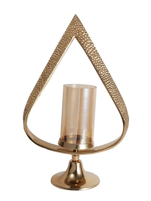 Add charm & character to your living space, with the 'Bella' gold hammered hurricane candle stand. Inspired by geometric shapes, this accent is sure to increase the style quotient of your room. The lustre gold glass matches the intricately hammered gold candleholder to perfection. Works well with a pillar candle & a t-light candle.