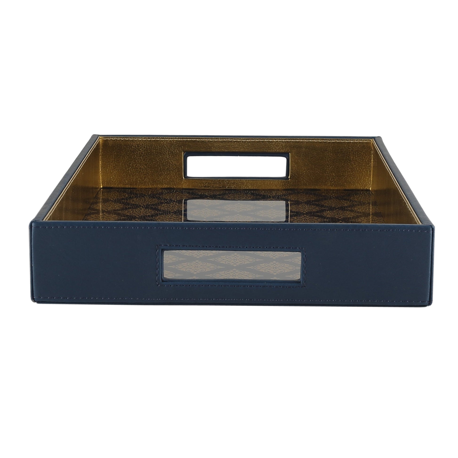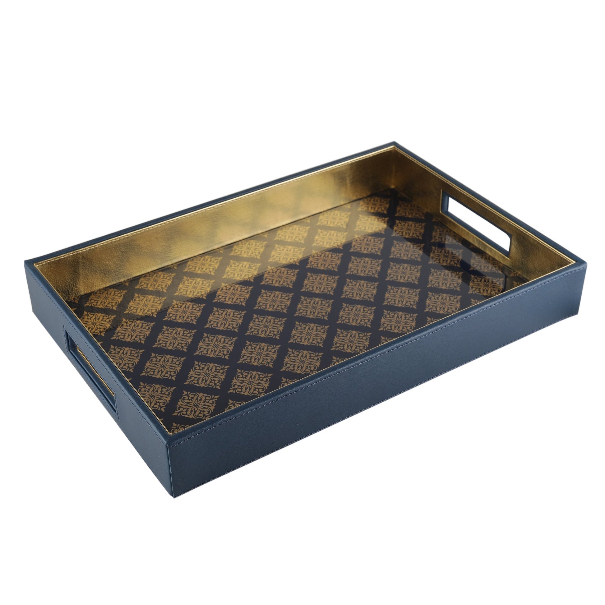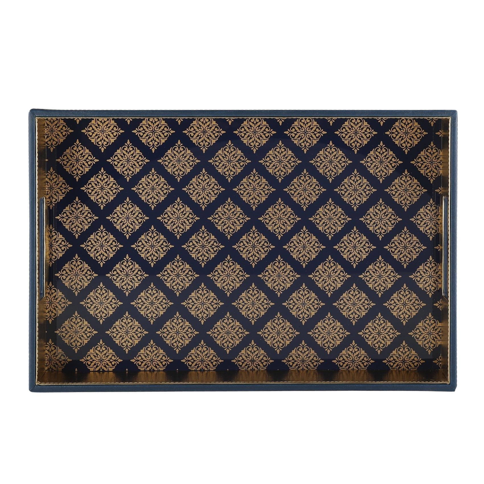 Bikaner Royal Blue Glass Printed Rectangle Tray