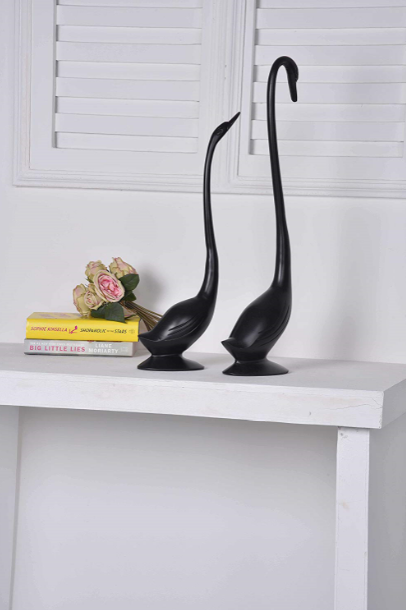 These Black finished swans make for an elegant addition to a living space. Crafted intricately, they add charm to wherever they are placed.