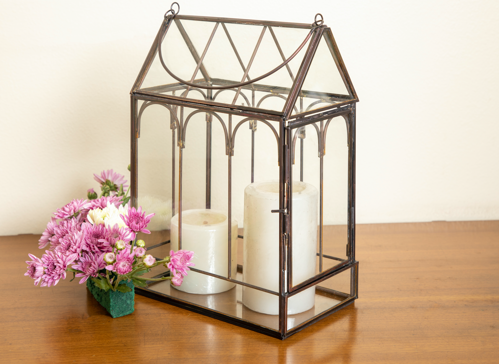 Add charm & character to your living space, with the 'Brent' home candle stand/lantern. Inspired by geometric shapes, this accent is sure to increase the style quotient of your room. The antique bronze finish accent is perfect to use both indoors & outdoors. Works well with a pillar candle & a t-light candle.
