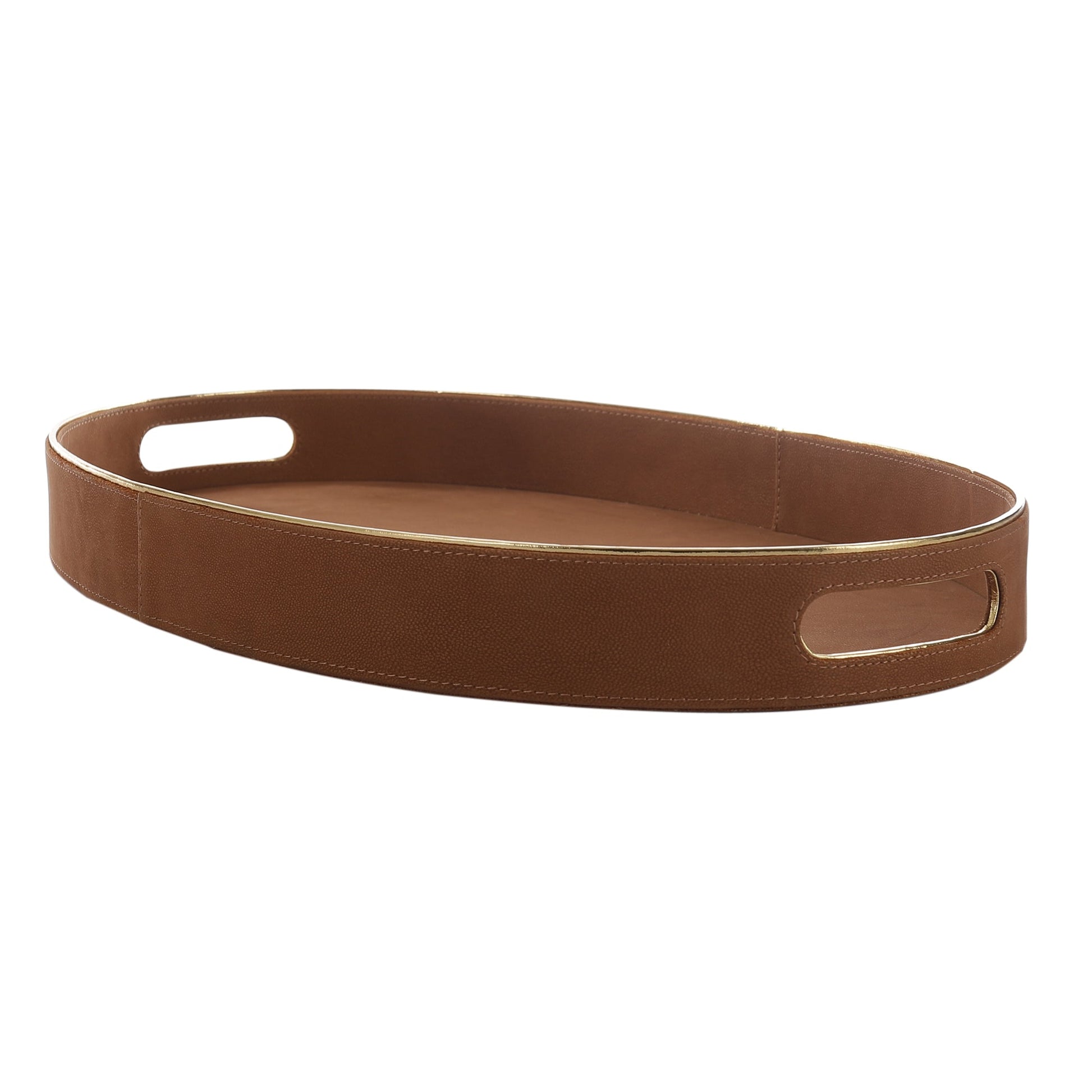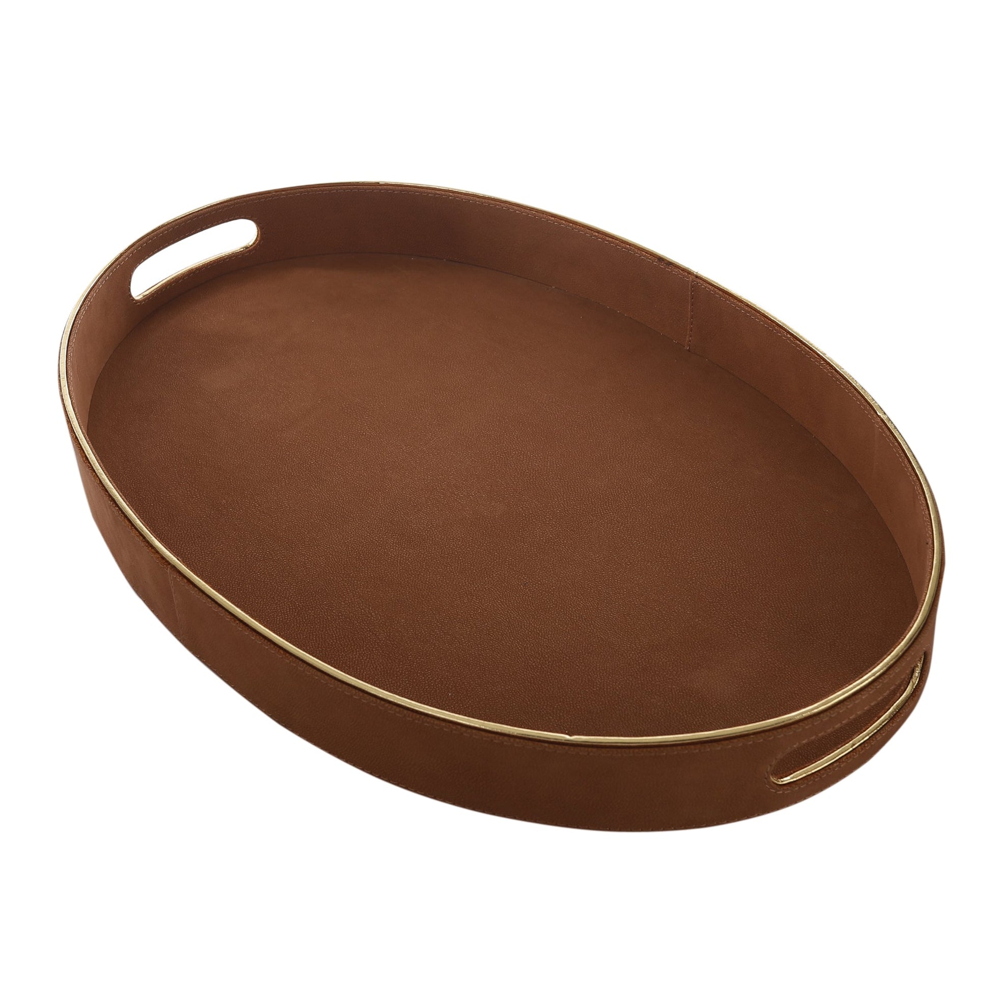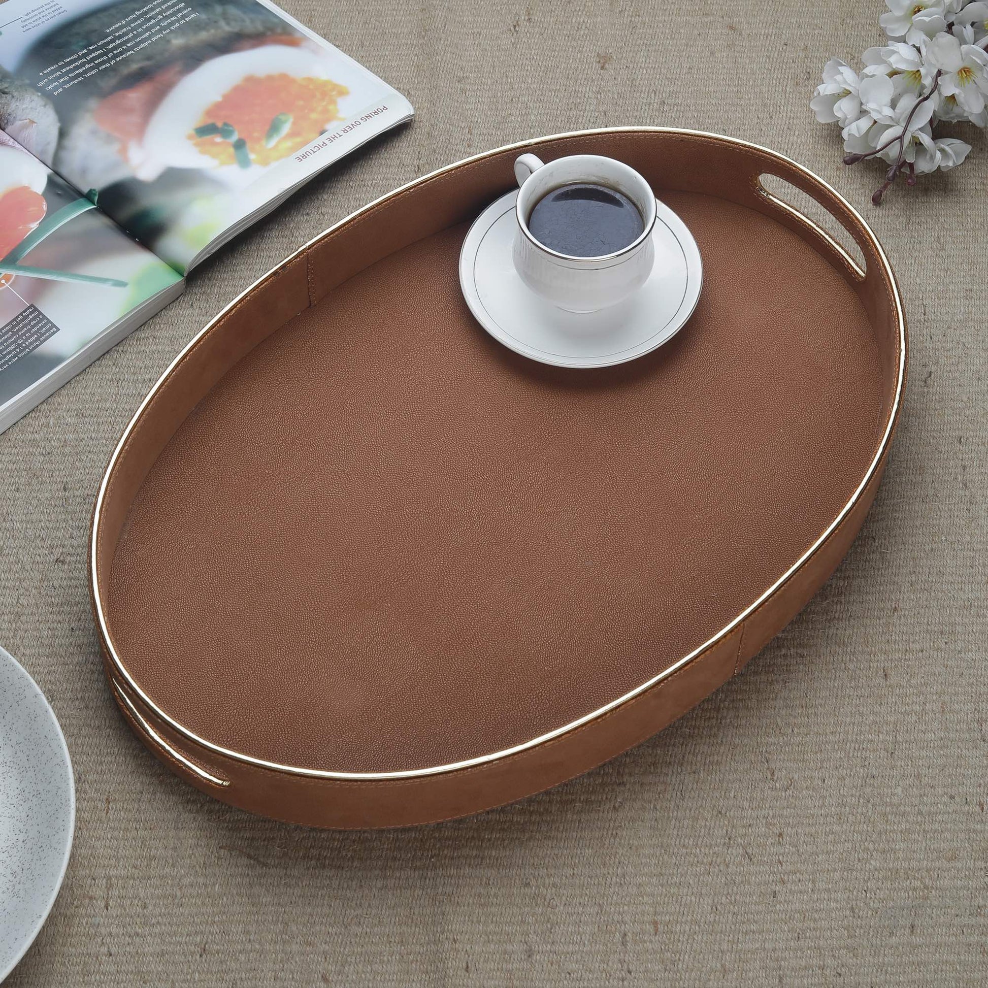 The clean & save lines of this dual finish serving tray make it an elegant addition for any living space. It's dual - dark tan & gold finish make it an eclectic marriage of design and usability. The sturdy handles make it great a serving tray & works well to serve any items you may desire, or as a paper tray.