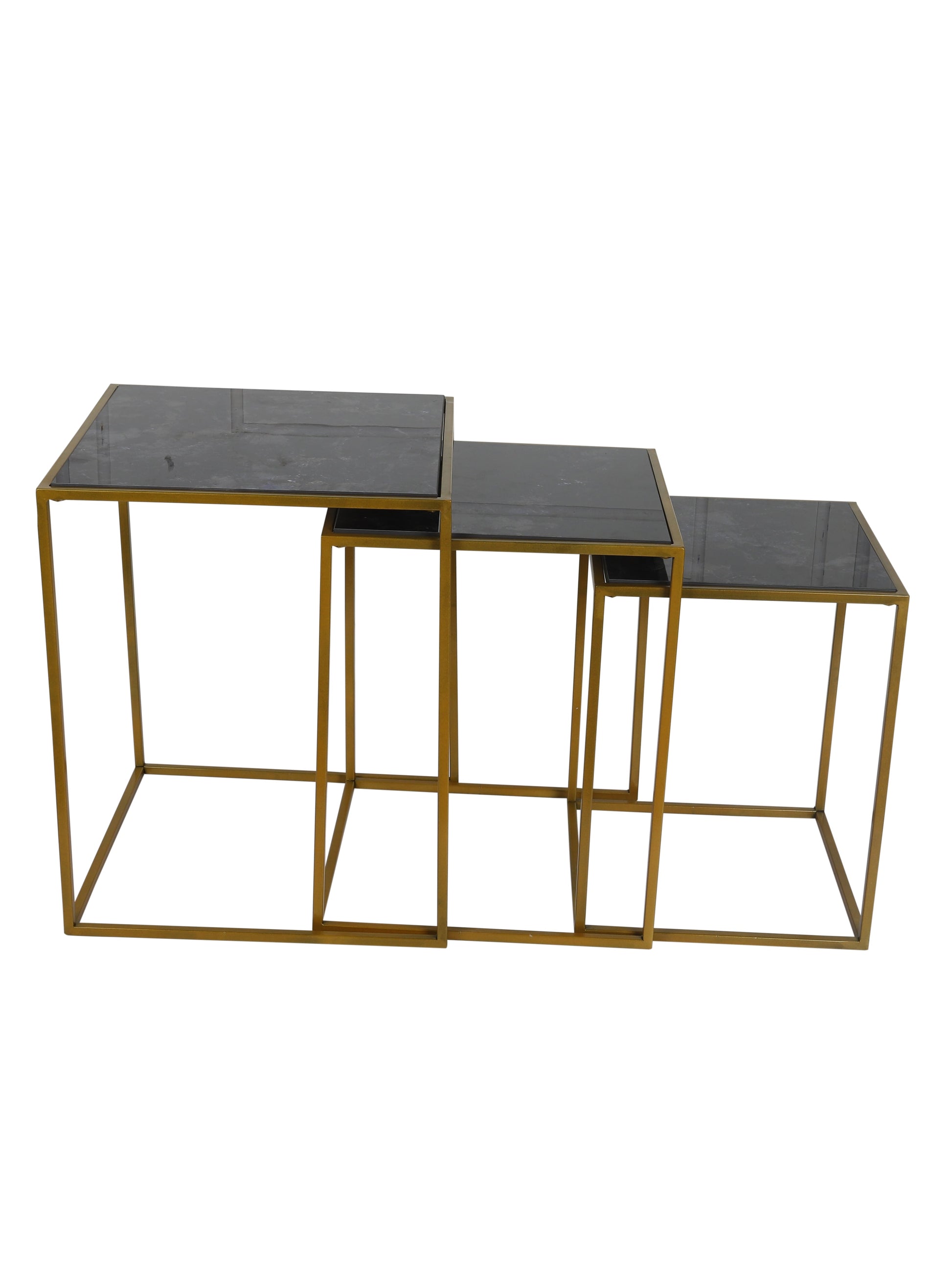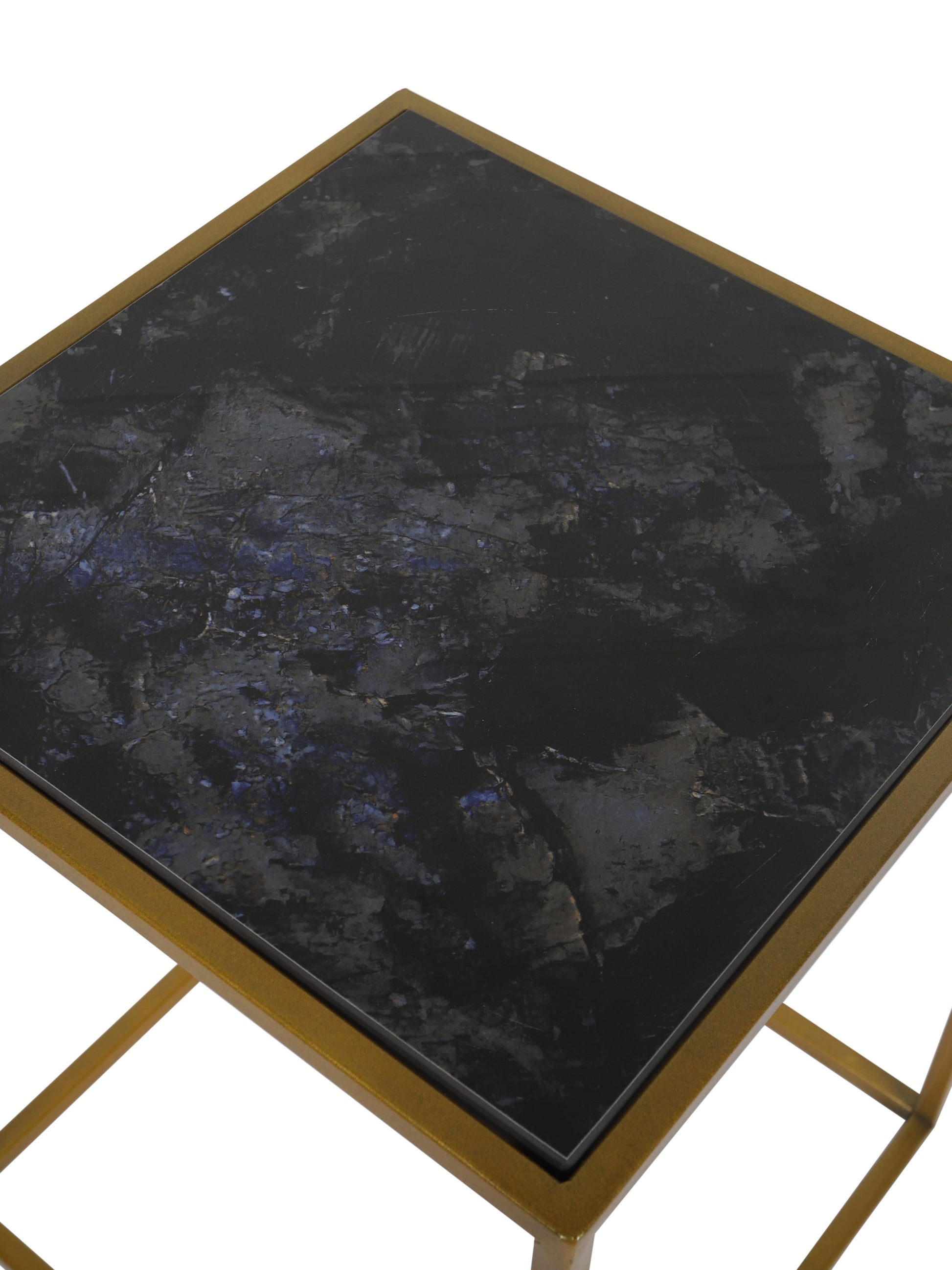 Add charm & style to your living space with the 'Cairo' Nesting Table Set of 3. The triple tone blue/black & gold finish of this table will enhance the look & feel of any room. The dual tone Turkish marble stands out with its Black & Blue hues. Perfect for any living space, this side table can be used to hold decorative accents or as a night stand.