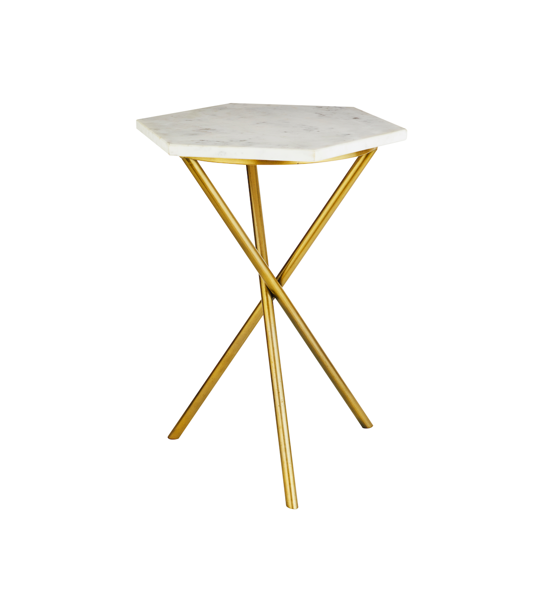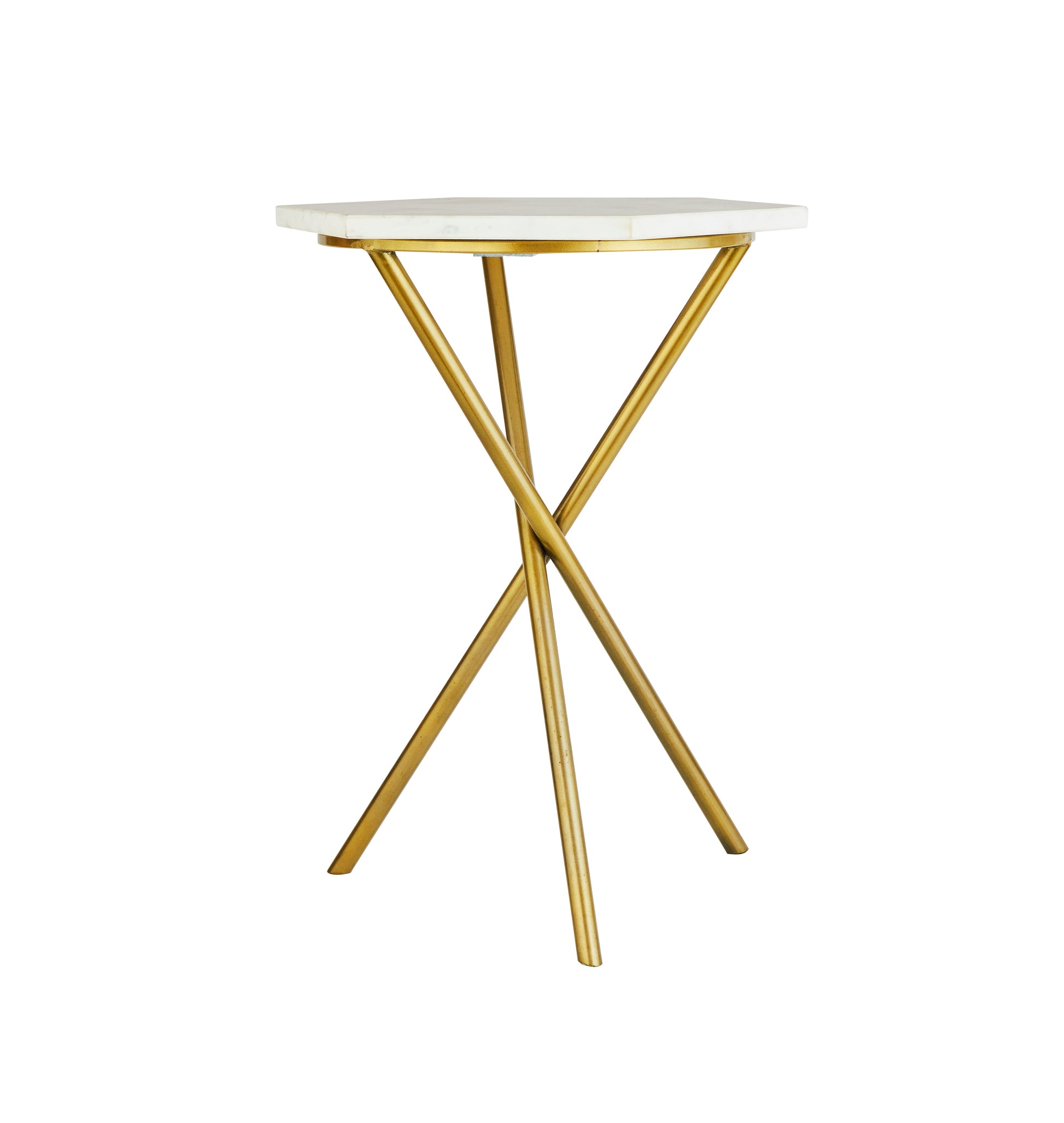 Add charm & style to your living space with the 'Chicago' Gold Tripod Marble Table. Perfect for any living space, this side table can be used to hold decorative accents or as a night stand.