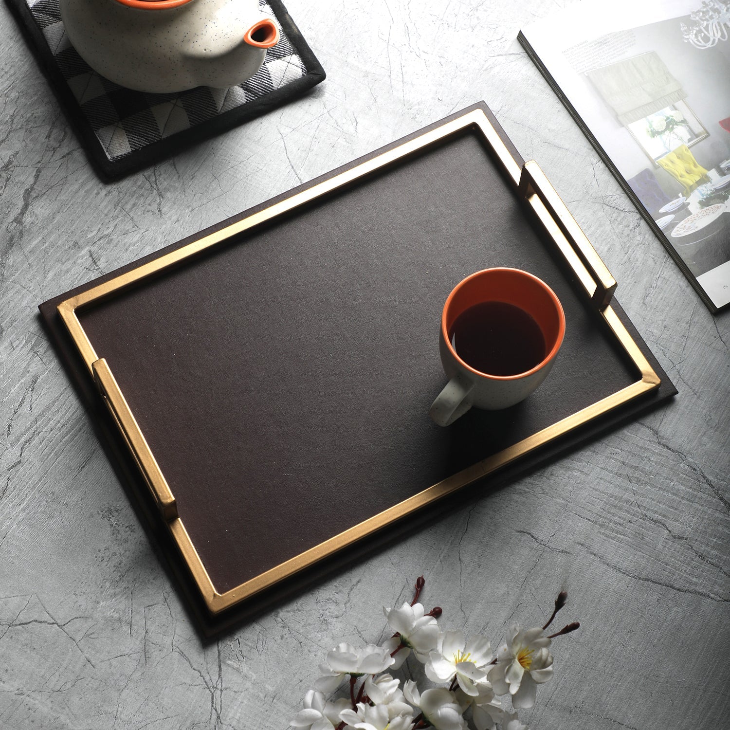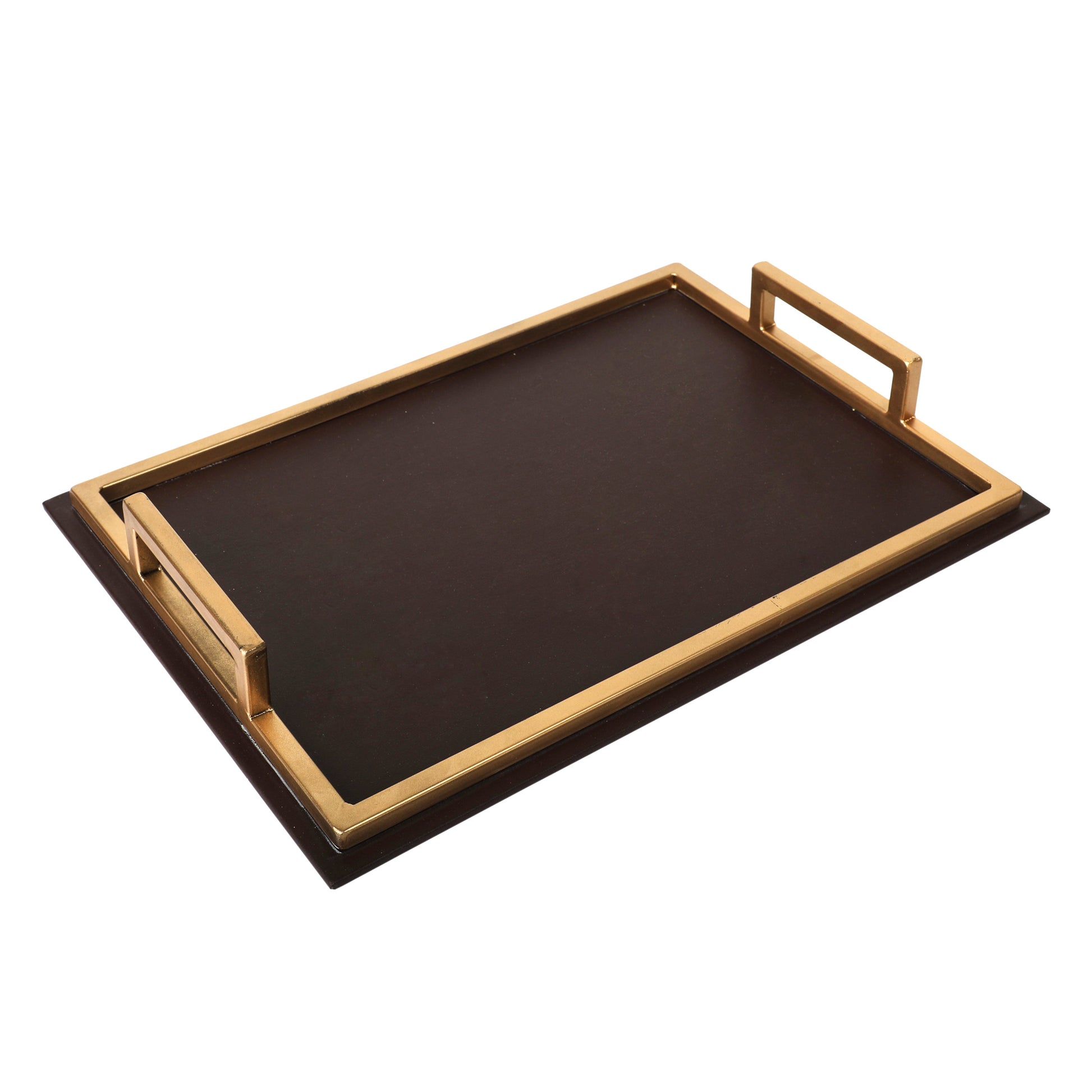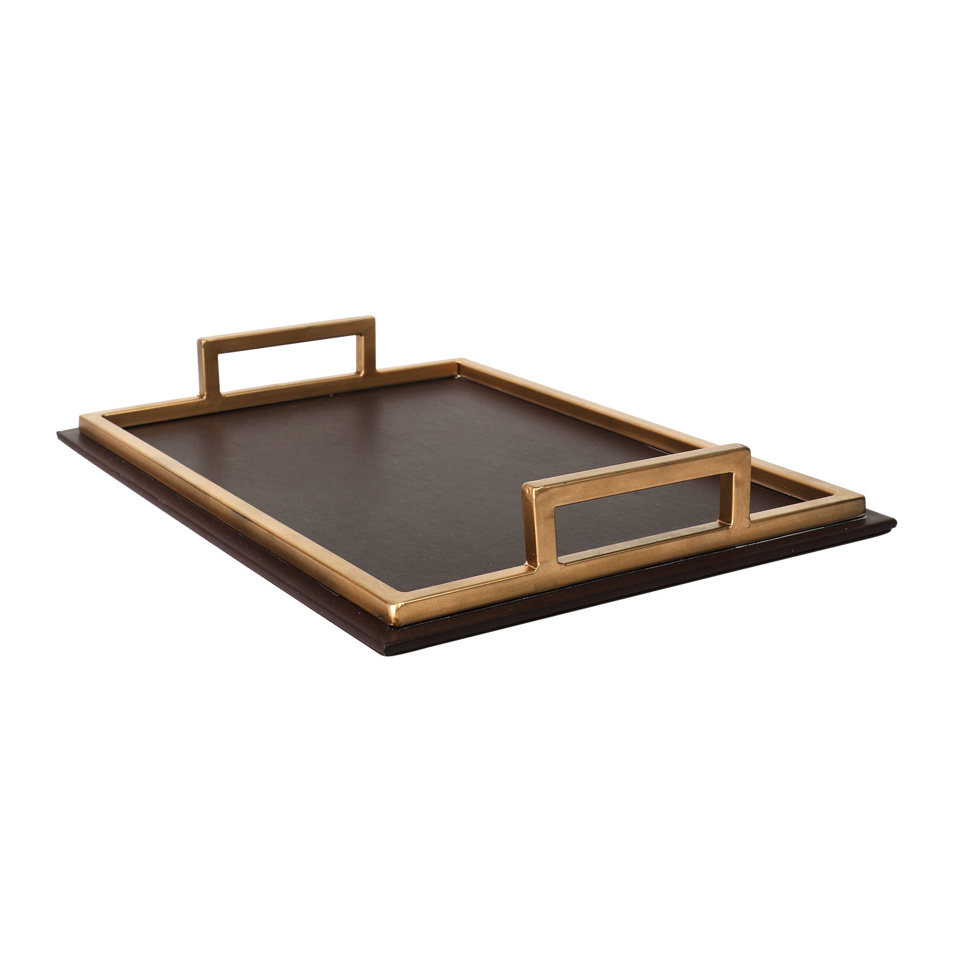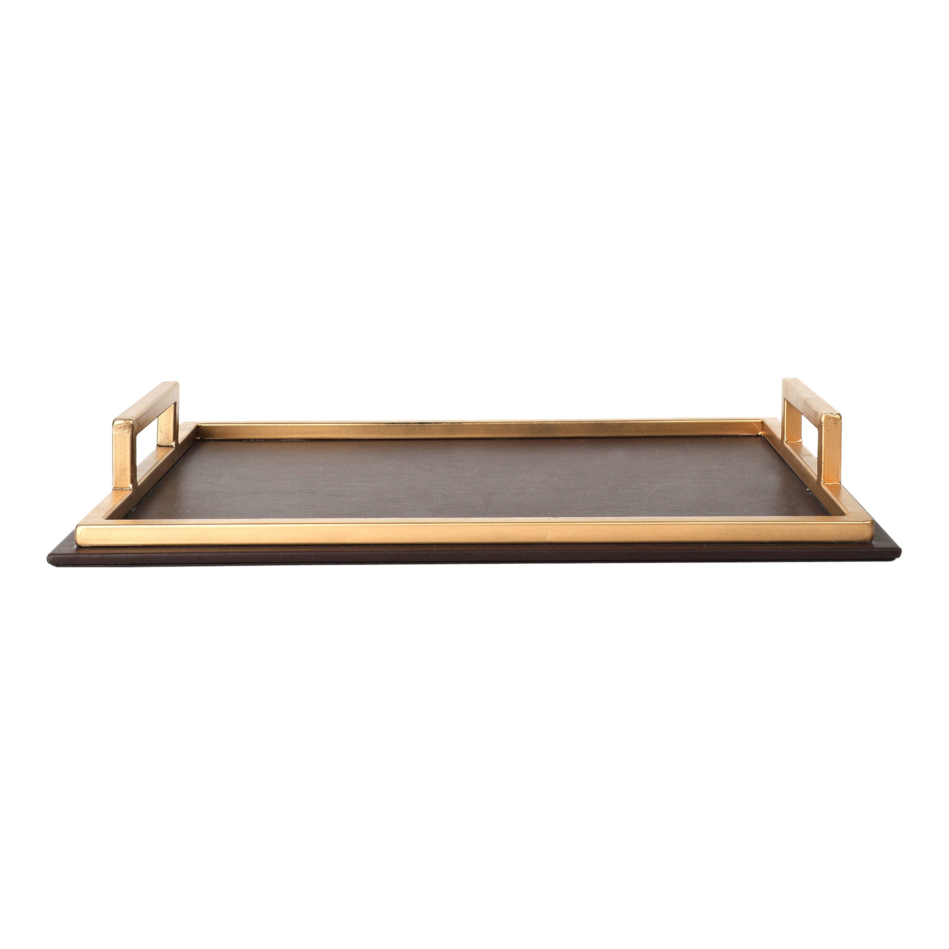 The elegant and artistic design of this stunning piece make it a truly ornate addition for any living space. It's dual tone brown tray & gold handles, is a perfect mix of usability & design. Works well as a serving tray or as an accent piece.