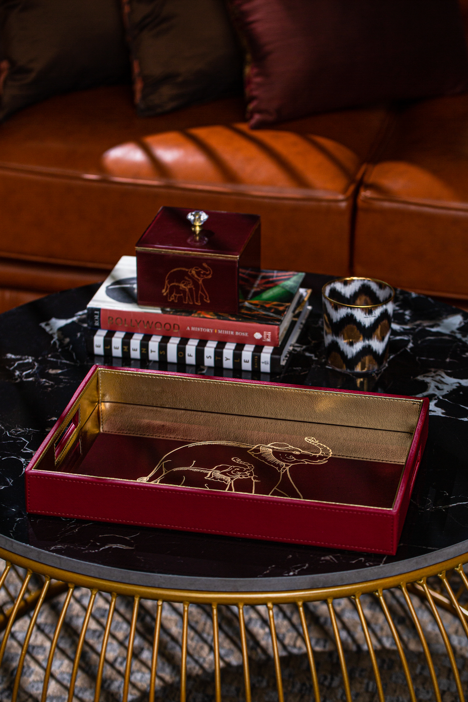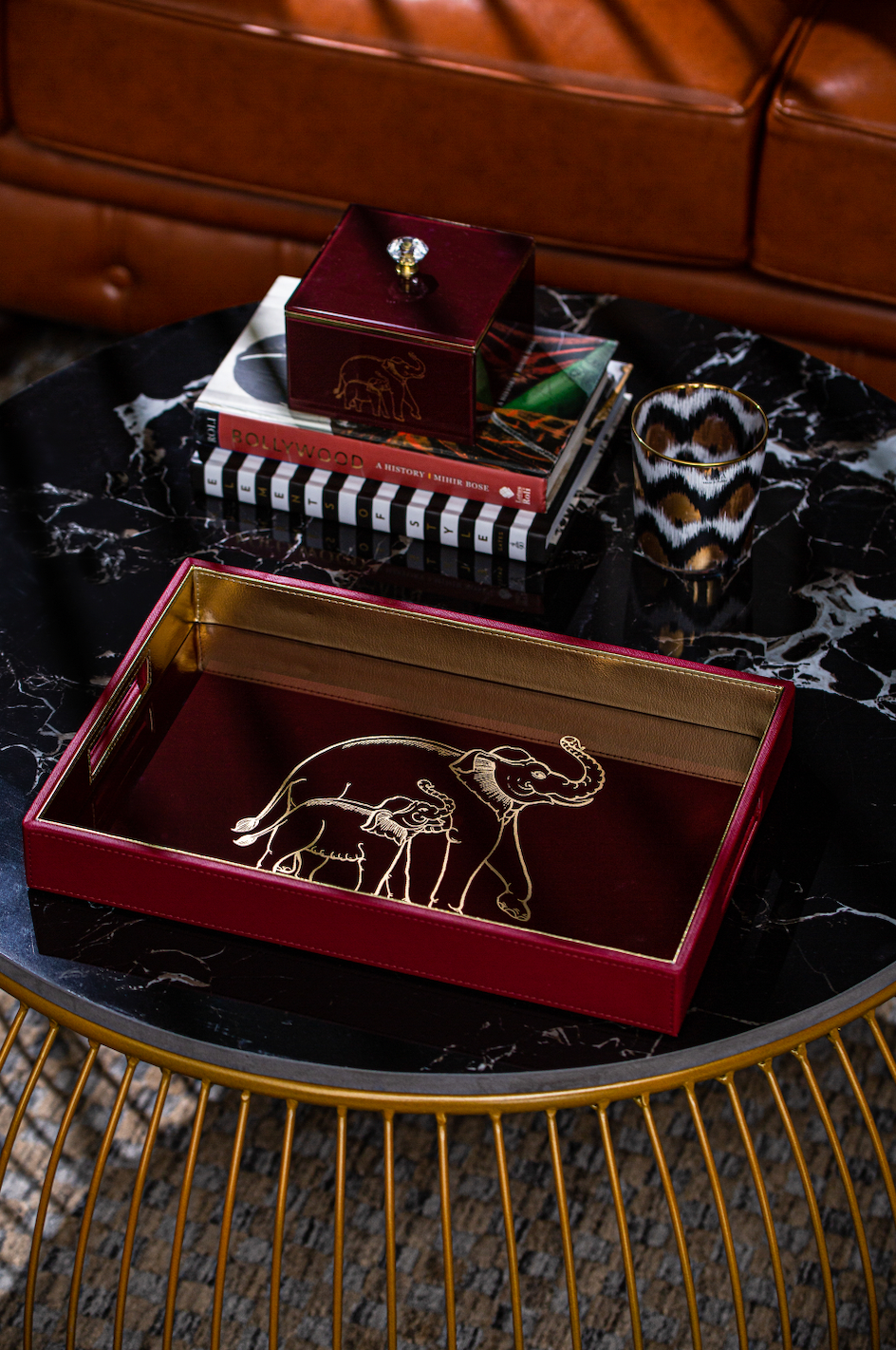 The artistic & eye-catching design of this stunning piece make it a truly ornate addition for any living space. It's delicate handcrafted Gold Elephant pattern on glass really make it stand out. Works well as a serving tray or as an accent piece.