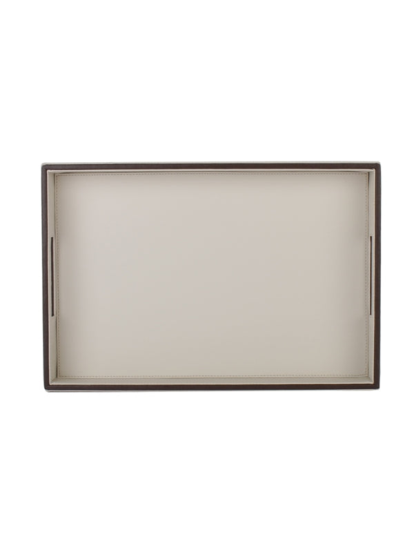 Cream & Brown Leatherite Rectangle Tray