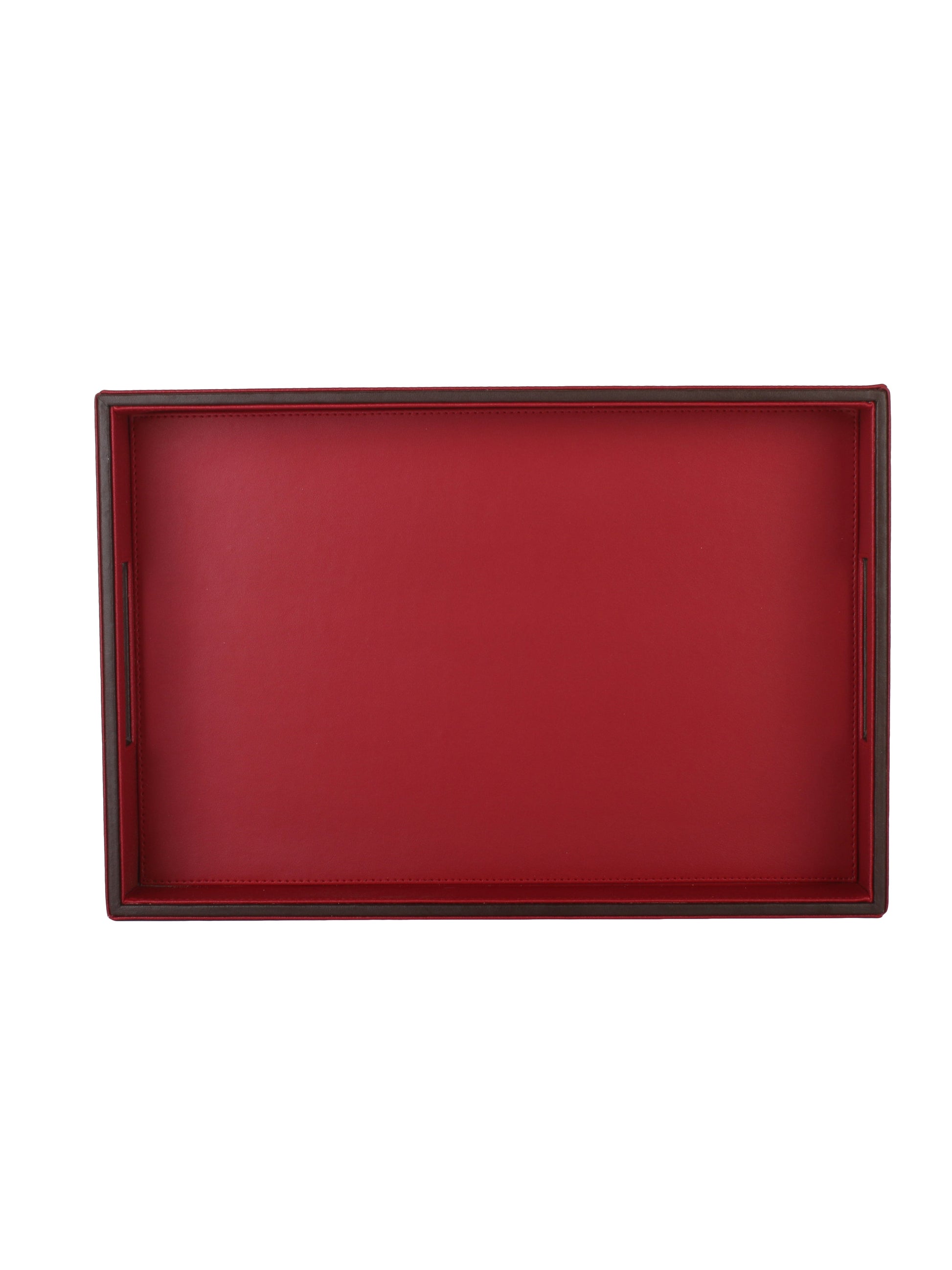 The clean & suave lines of this dual finish serving tray make it an elegant addition for any living space. It's dual - Red & Brown finish make it an eclectic marriage of design and usability. The sturdy handles make it a great serving tray and works well to serve any items you may desire, or as a paper tray.
