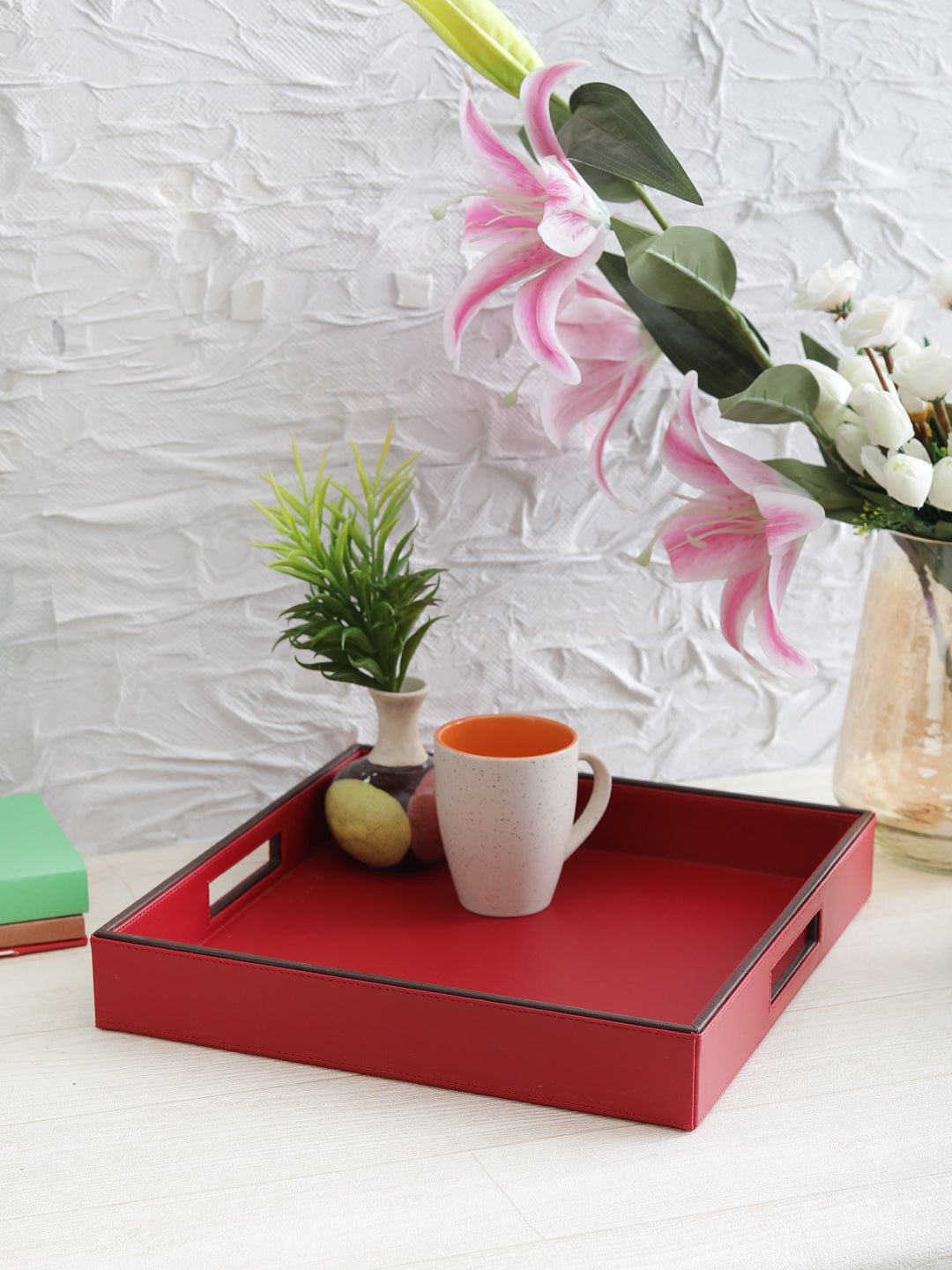 The clean & save lines of this dual finish serving tray make it an elegant addition for any living space. It's dual - blue & gold finish make it an eclectic marriage of design and usability. The sturdy handles make it great a serving tray & works well to serve any items you may desire, or as a paper tray.