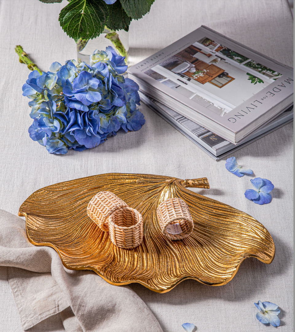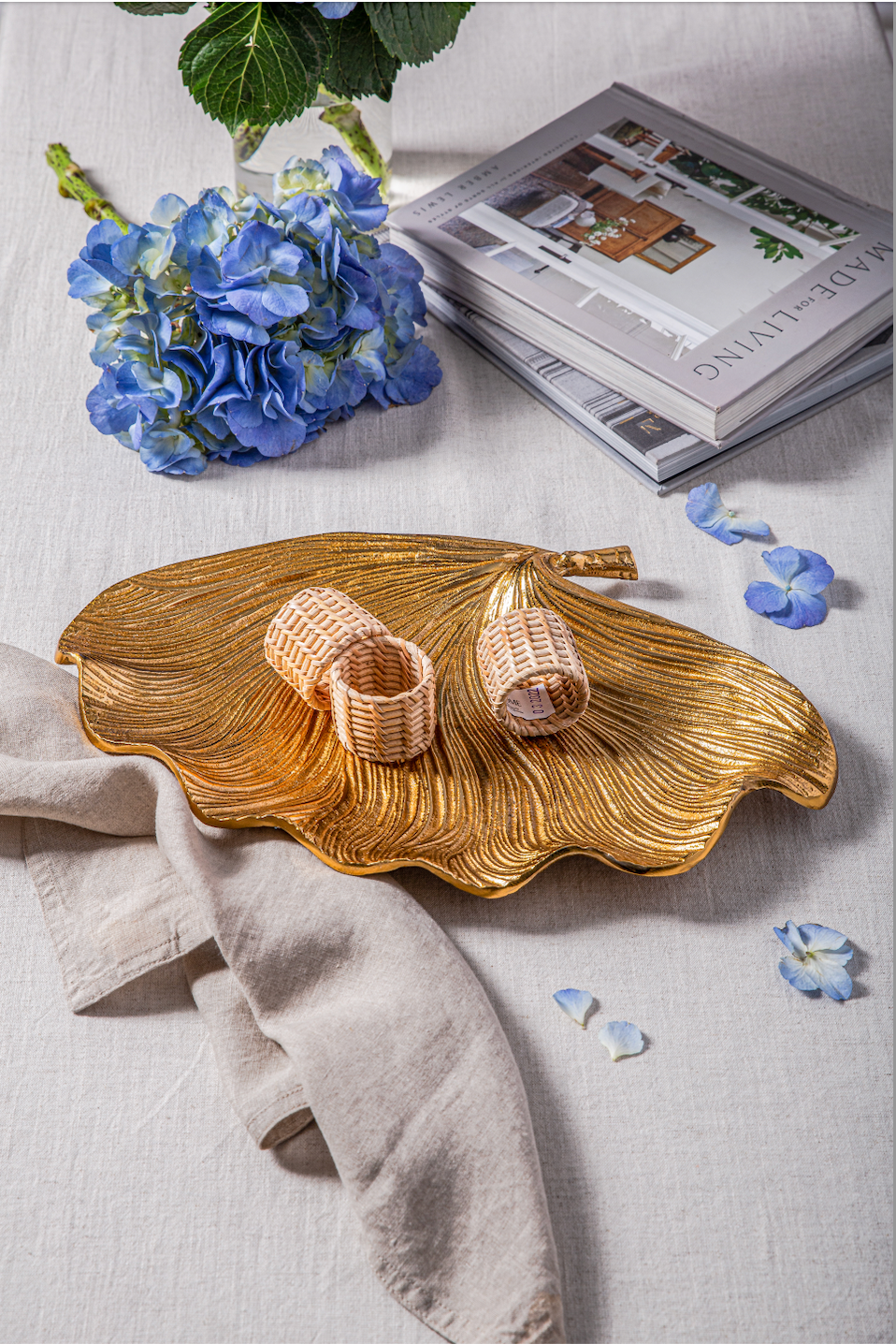 The artistic & eye-catching design of this stunning leaf platter make it a truly ornate addition for any living space. It's intricate handcrafted leaf design really make it stand out. Works well as a platter or as an accent piece.
