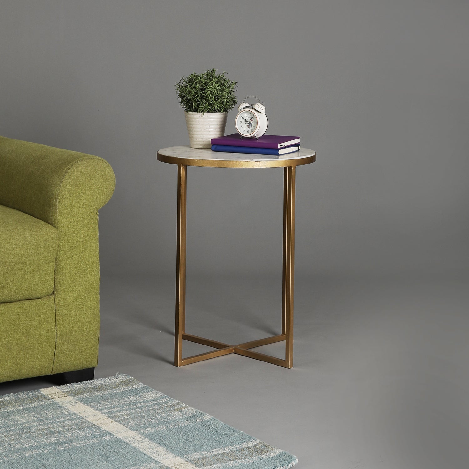 Add charm & style to your living space with the 'Denise Table'. The dual tone white & gold finish of this table will enhance the look & feel of any room. Perfect for any living space, this side table can be used to hold decorative accents or as a night stand.