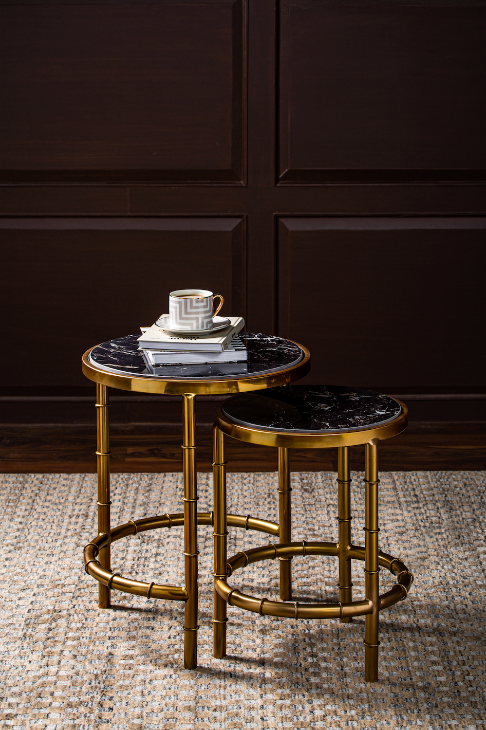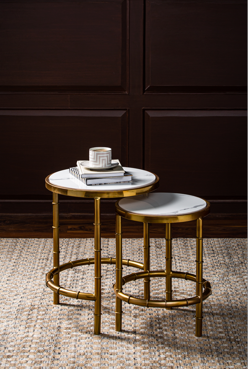 Add charm & style to your living space with the 'Dianne' Gold Bamboo Nesting Table Set of 2. The dual tone finish of this table will enhance the look & feel of any room. Perfect for any living space, this side table can be used to hold decorative accents or as a night stand.