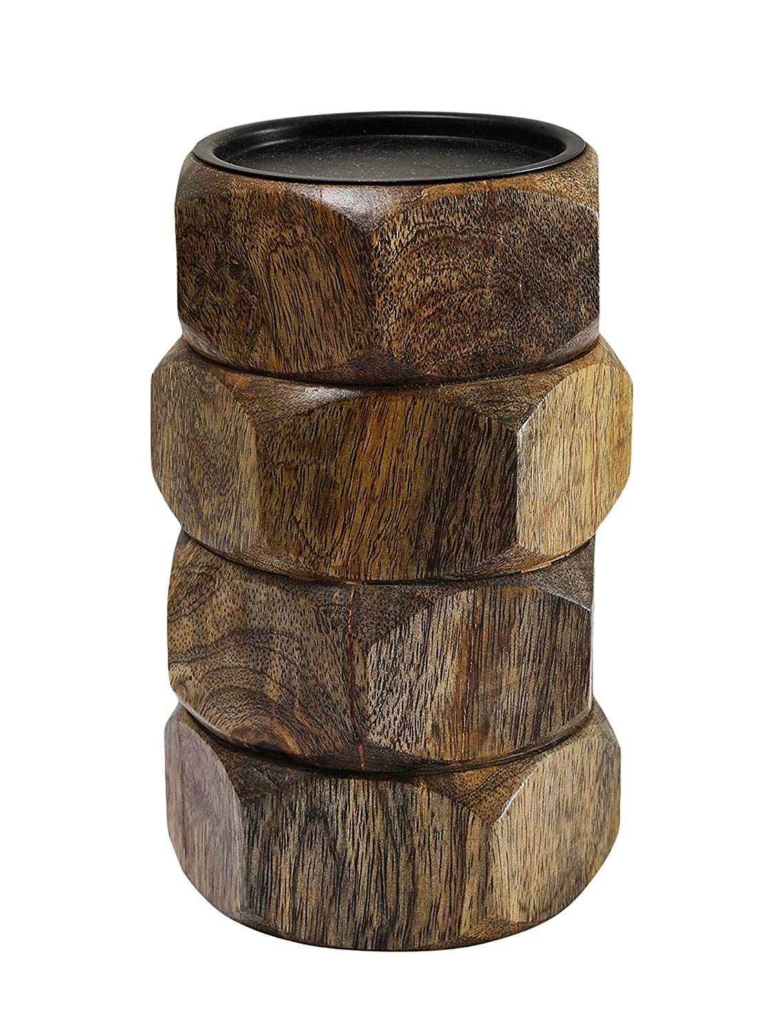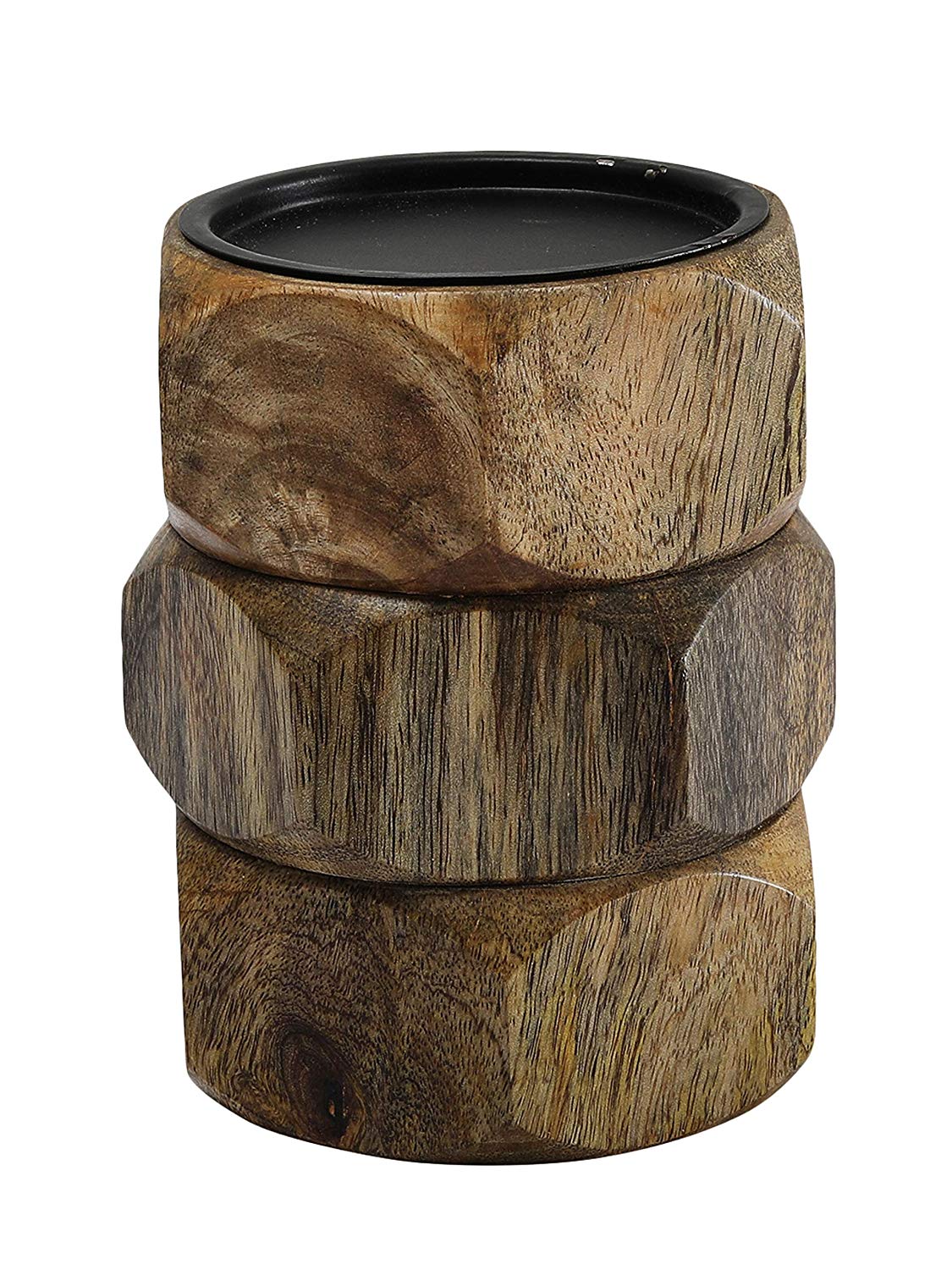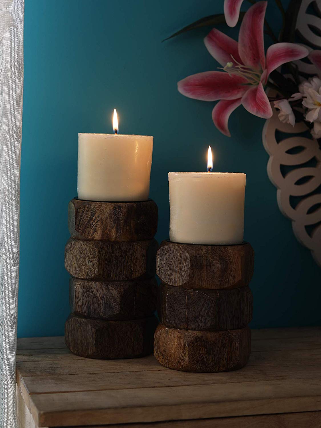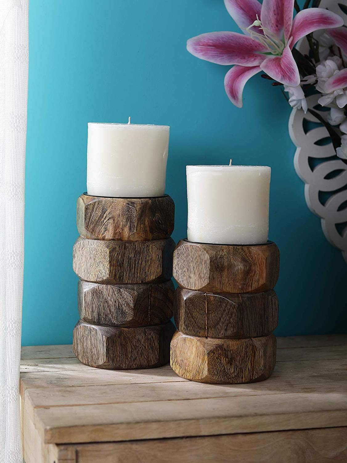 The natural finish & modern design, make our 'Elm Wood ' candleholder set of 2 , a must have for your living space. Handcrafted intricately, this accent is sure to add charm & royalty to your home .