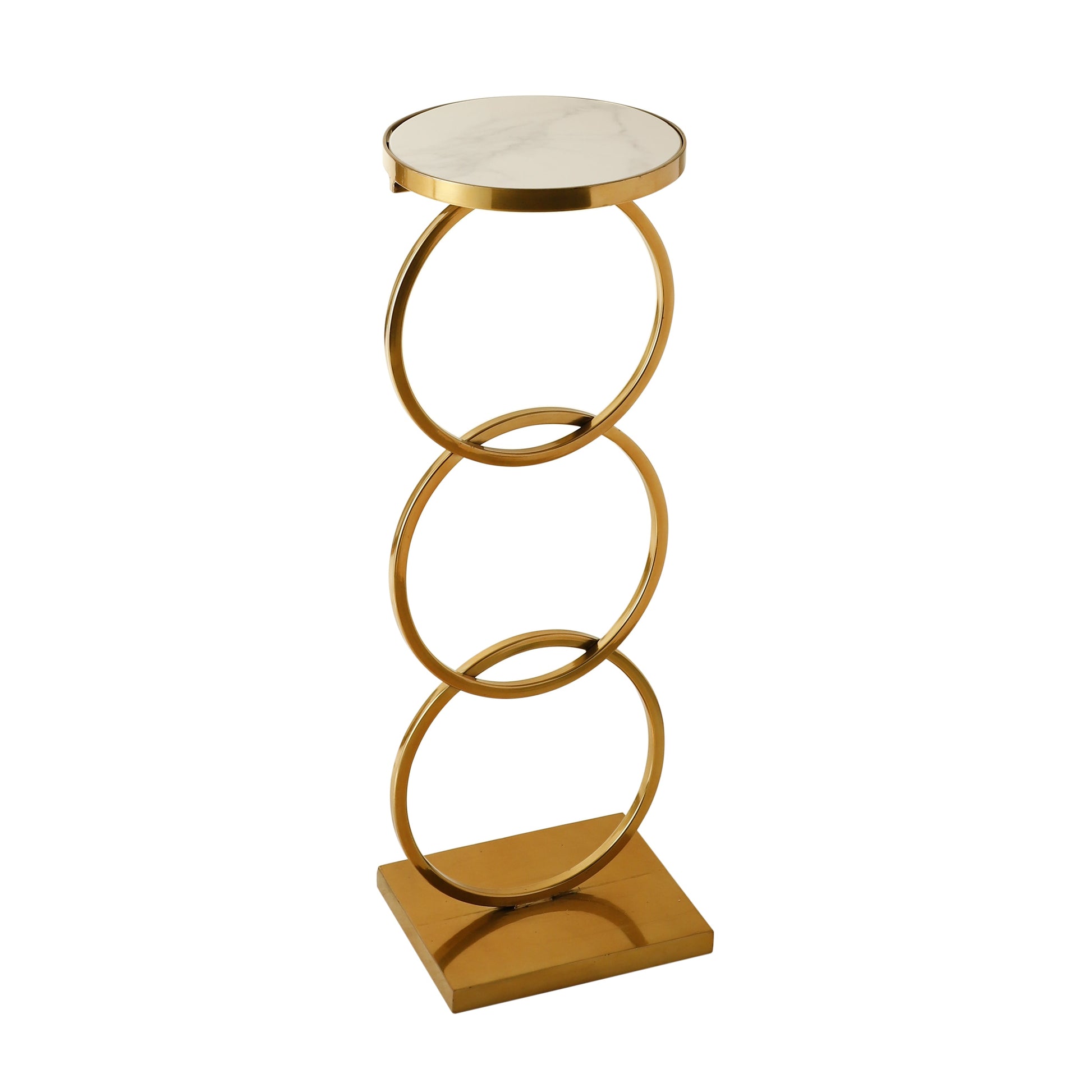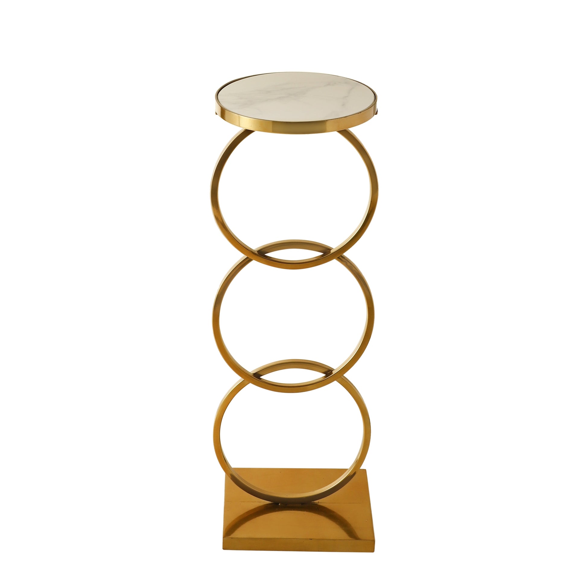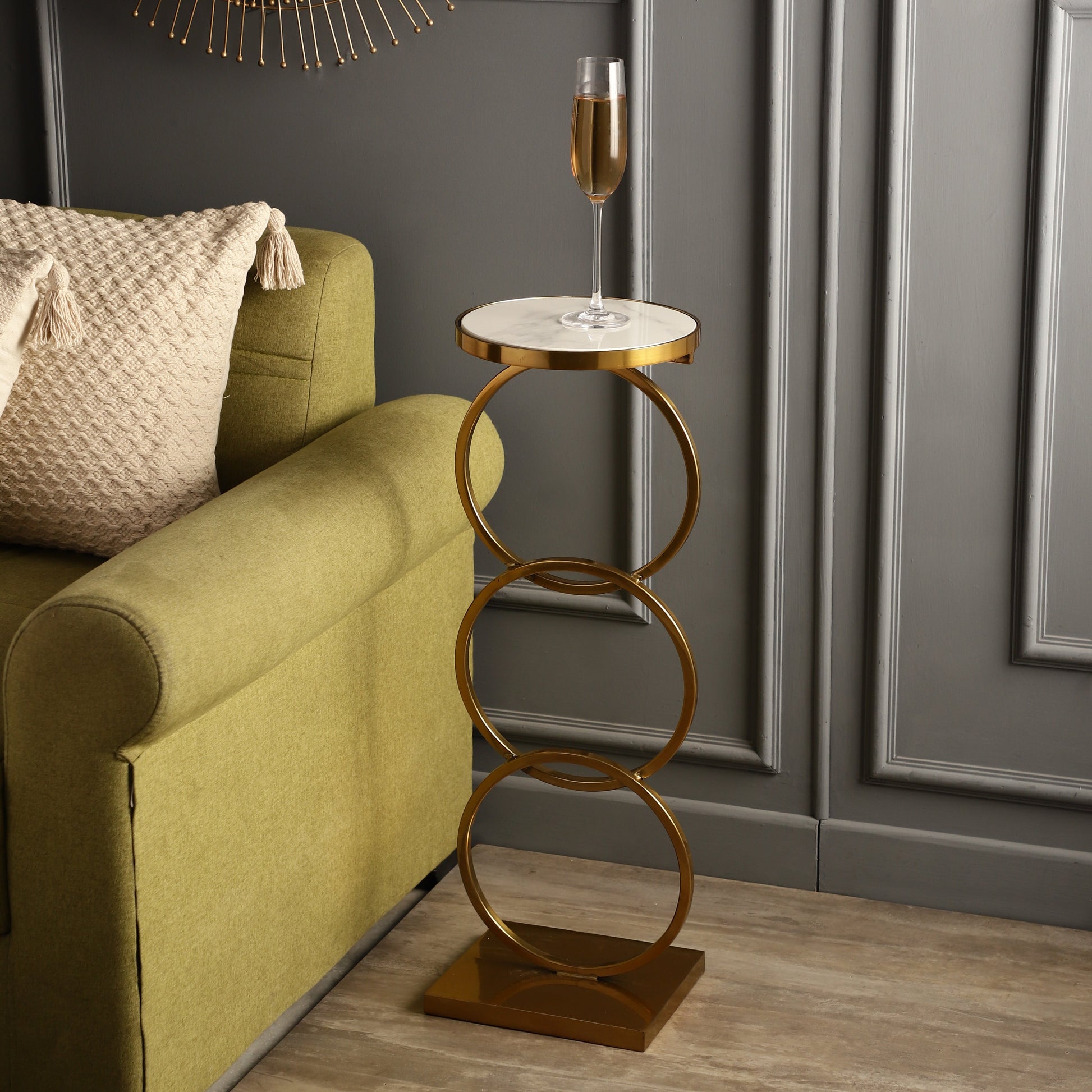Add character & style to your living space with the 'Evelyn' Drink Table. The dual tone gold & white finish of this table will enhance the look & feel of any room. Intricately hand crafted, this table is the perfect size to put a drink or a vase.