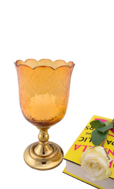 The curvy lines of this Gold hurricane candle stand make it a beautiful addition for you living space. Its classic and glass top. Aluminium base adds class & luxury while keeping the flame glowing & protected from the wind.