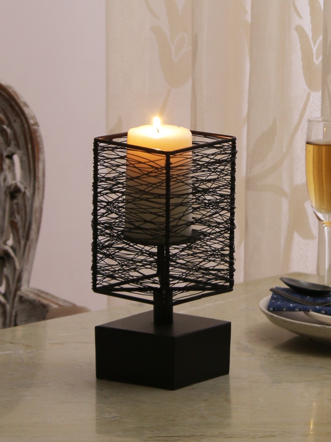 The Clean & Modern shape of this candleholder make it a truly beautiful accent. An eclectic mix of the modern & the rustic, this brilliantly styled iron Candlestand will surely get a lot of heads turning pleasantly. Completely safe for indoors/ outdoors use, it works well with a pillar candle or a t-light.