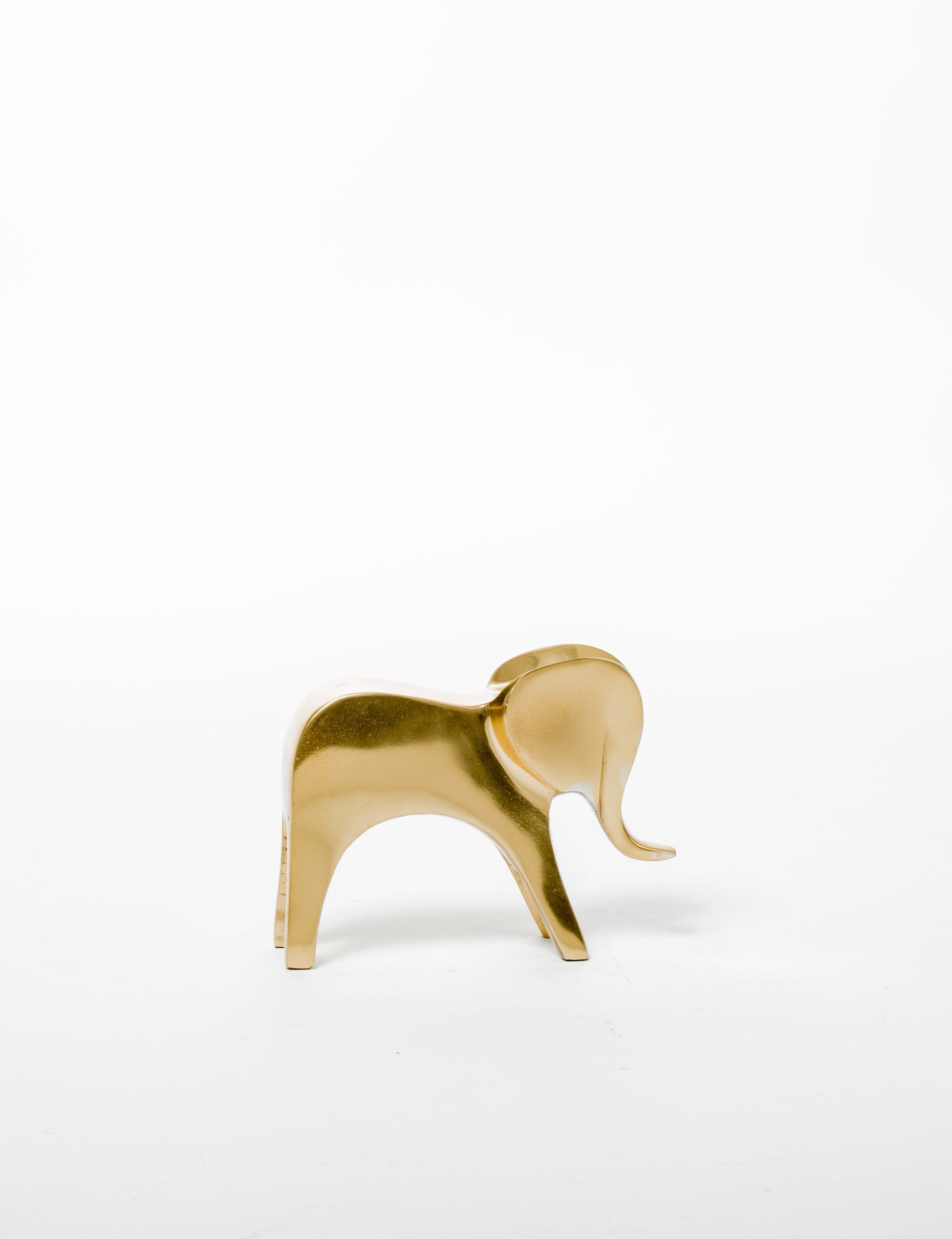 The molded look of this gold-plated geometric elephant makes it a magnificent accent to stylize any home. Be it on the shelf, coffee table, or as a centerpiece, this item will be the envy of all. Inspired by plastecine toy shapes, it can be displayed by itself or in combination with other animals available. Gift packaging also available.