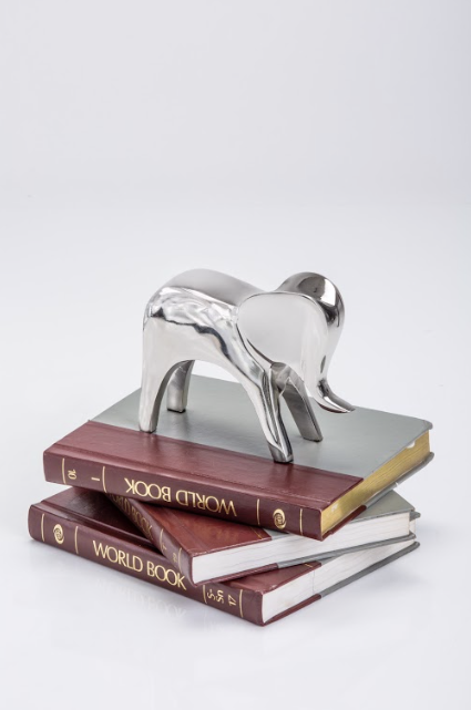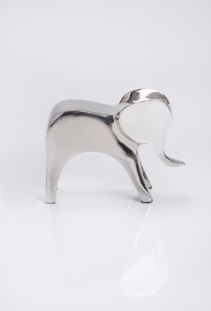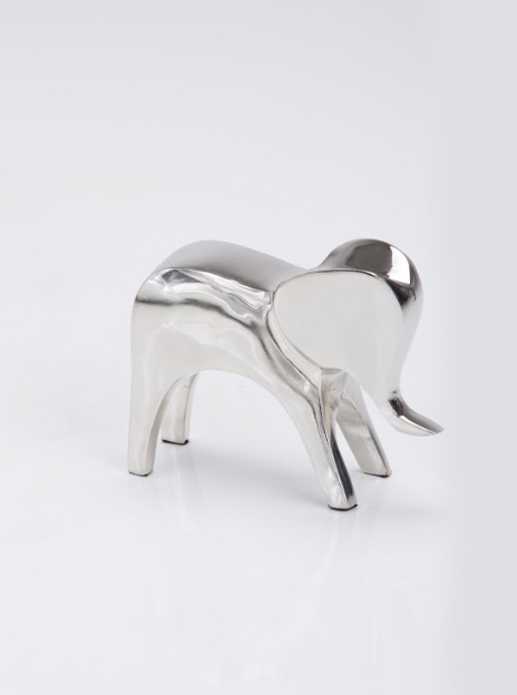The molded look of this nickel-plated geometric elephant makes it a magnificent accent to stylize any home. Be it on the shelf, coffee table, or as a centerpiece, this item will be the envy of all. Inspired by plastecine toy shapes, it can be displayed by itself or in combination with other animals available. Gift packaging also available.