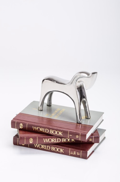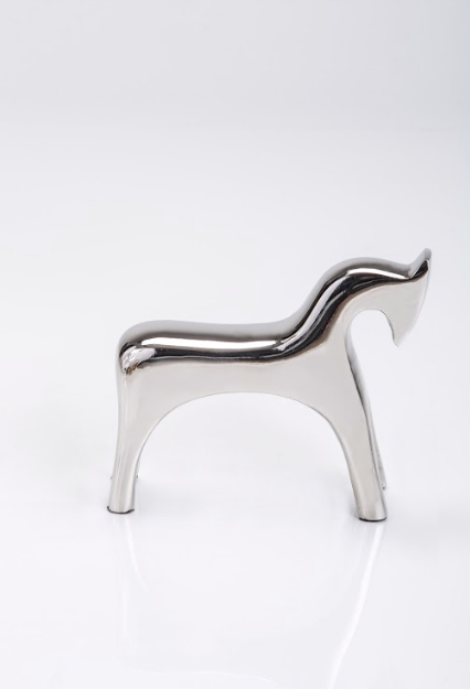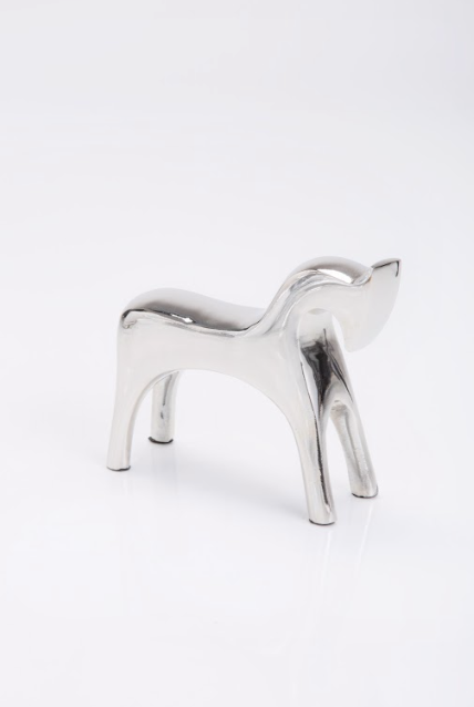 The molded look of this nickel-plated geometric horse makes it a magnificent accent to stylize any home. Be it on the shelf, coffee table, or as a centerpiece, this item will be the envy of all. Inspired by plastecine toy shapes, it can be displayed by itself or in combination with other animals available. Gift packaging also available.