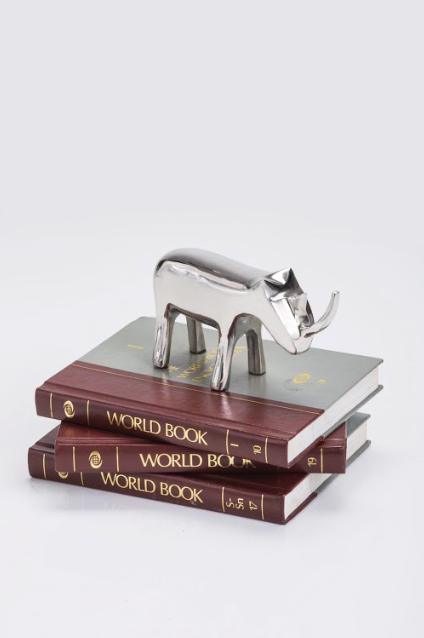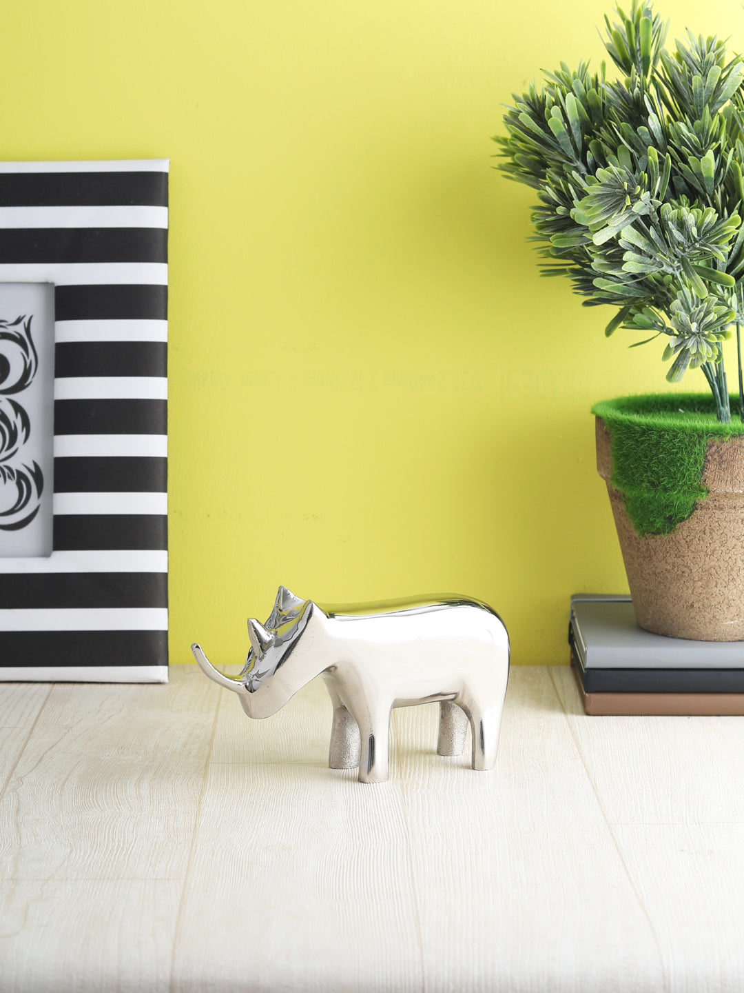 The molded look of this nickel-plated geometric rhino makes it a magnificent accent to stylize any home. Be it on the shelf, coffee table, or as a centerpiece, this item will be the envy of all. Inspired by plastecine toy shapes, it can be displayed by itself or in combination with other animals available. Gift packaging also available.