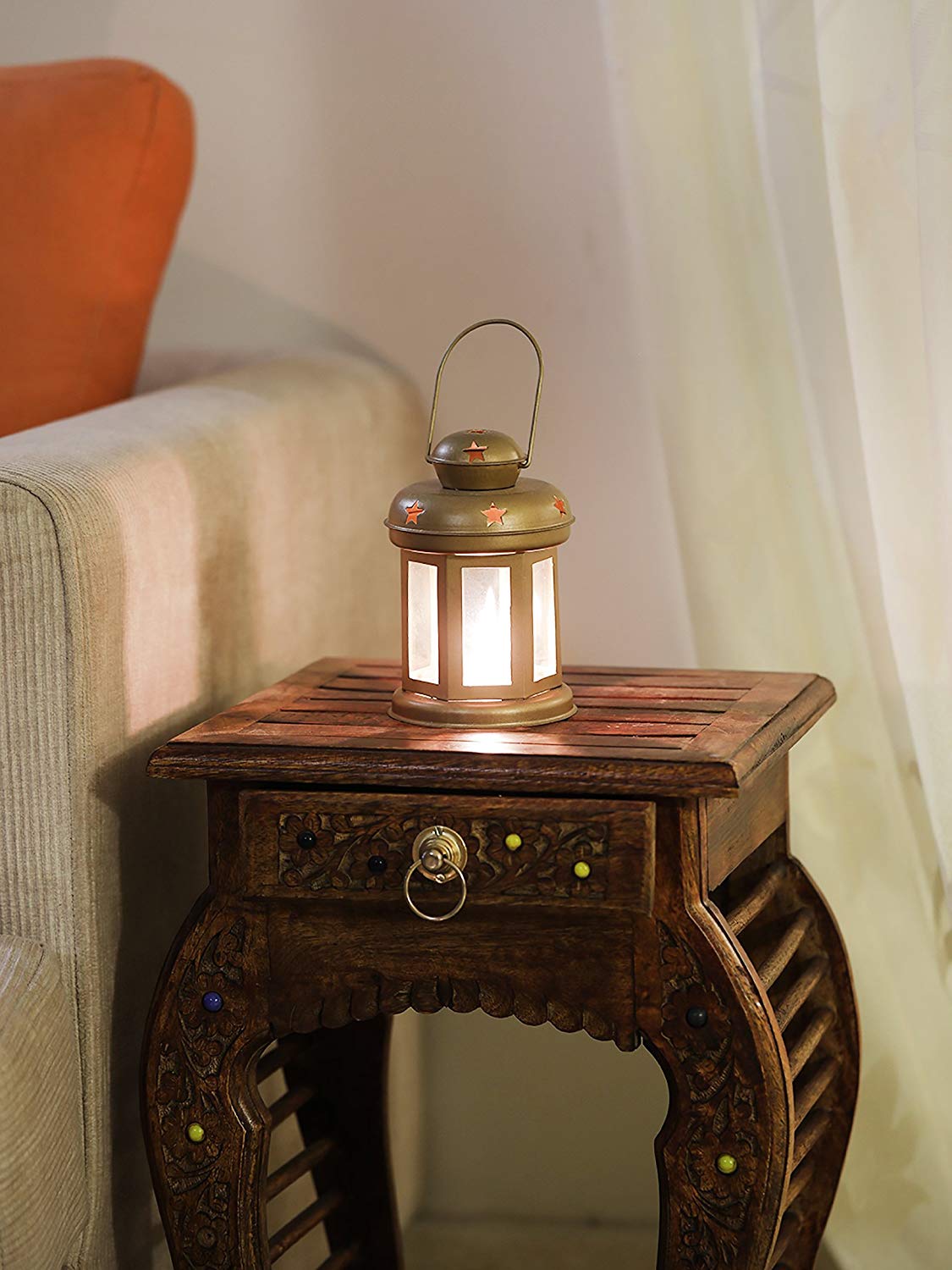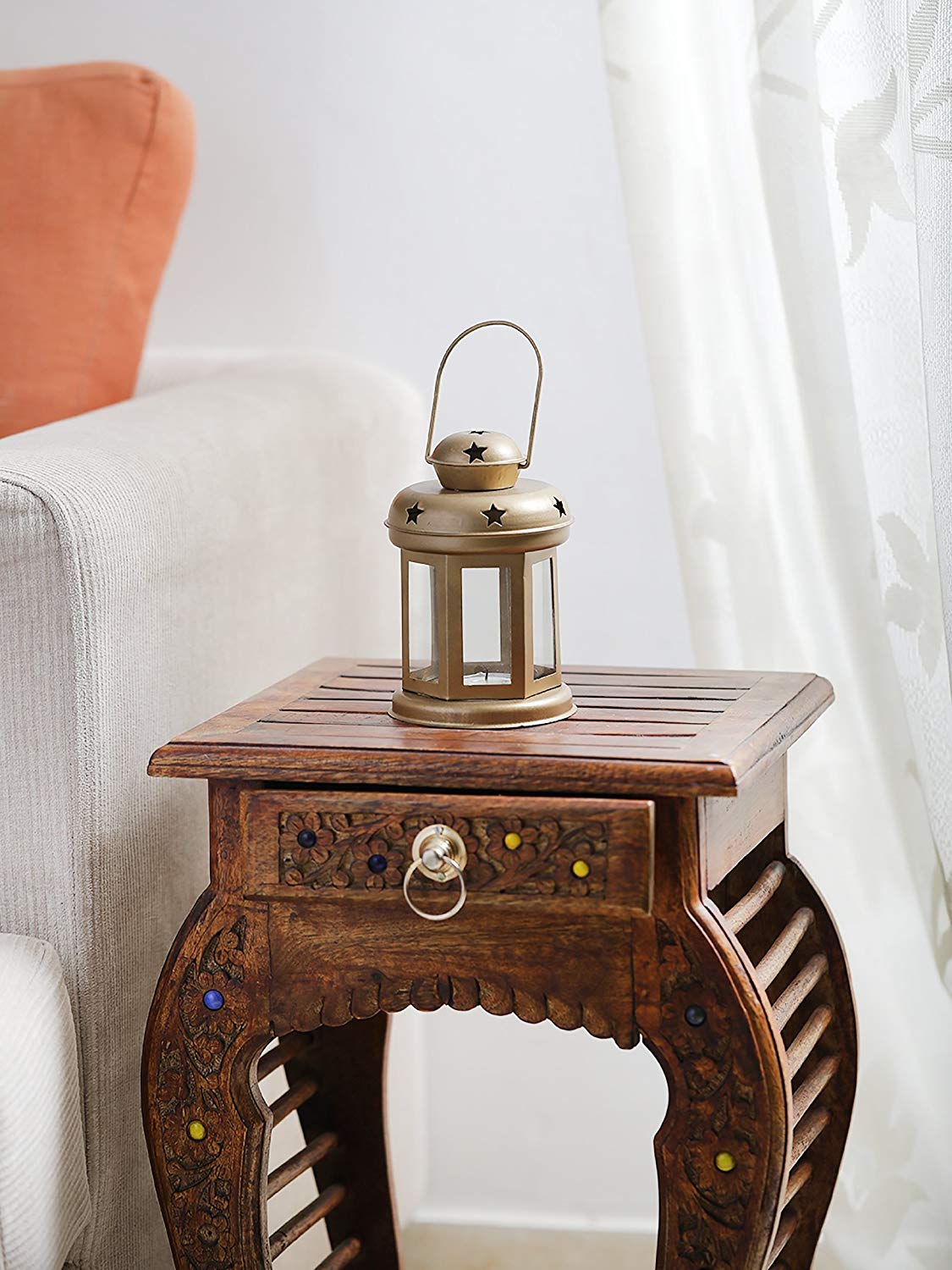 'Sammsara's' intricate star shape cut out design gives an exotic vibe to the lantern. Handcrafted perfectly, these iron & glass accent pieces add charm & quirkiness to every room. Available in 6 color options Blue, Red, Yellow, White, Gold & Black you cannot just choose one. Every piece come with a t-light, so now you can just sit back, relax & watch the serene light brighten up your room.