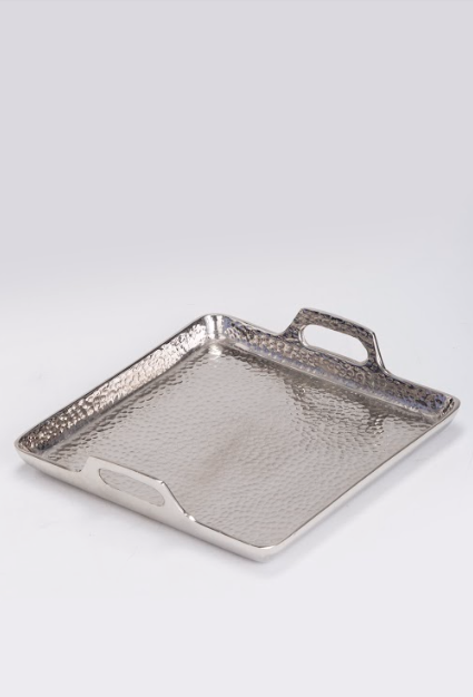 This nickel-plated, hammered Aluminium tray is simple yet stunning. It is food safe and can be used as a serving tray, food platter or to stack up a bunch of small and large candles for display.