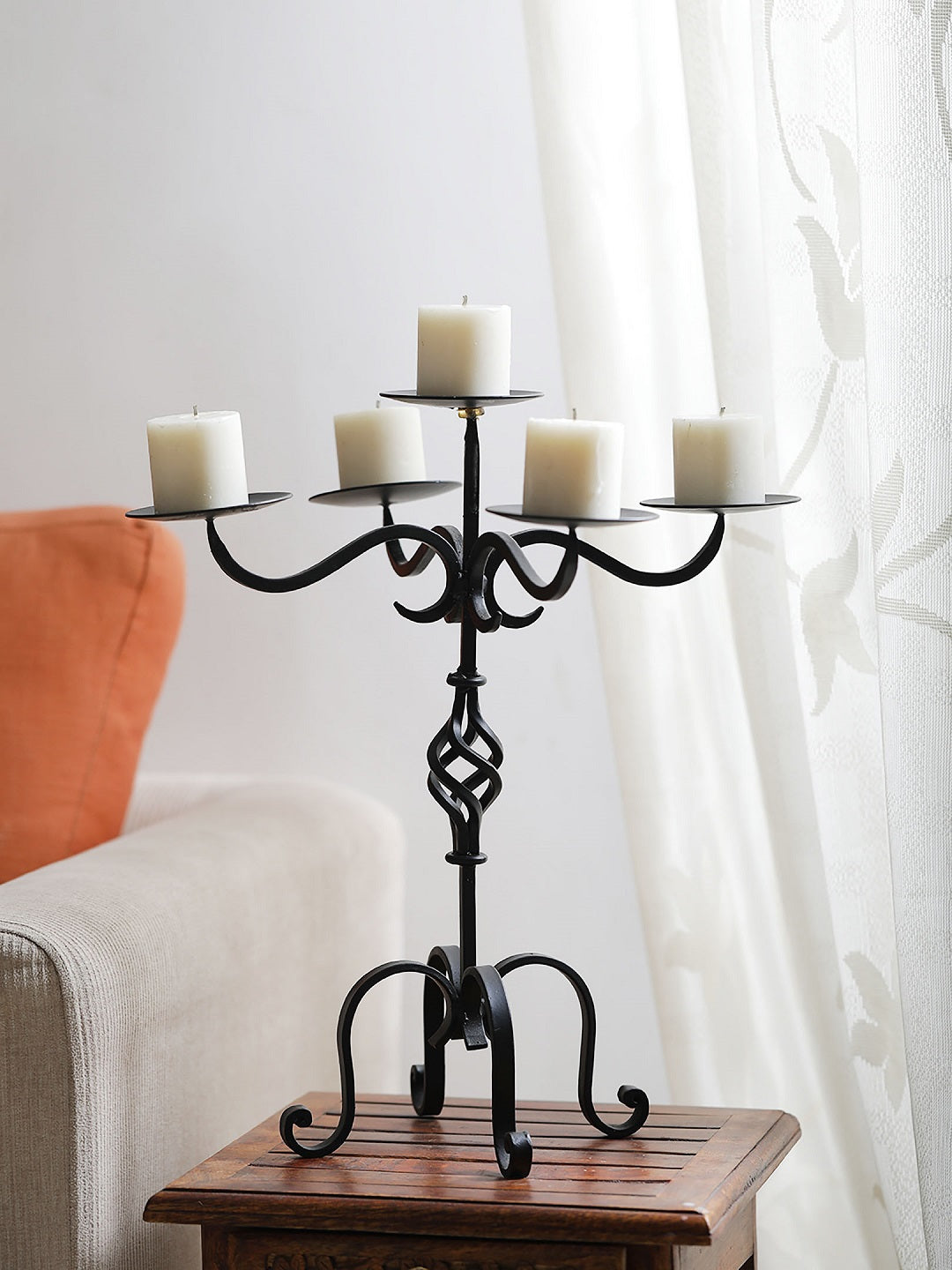 The traditional & elegant lines of this candle holder make it a stunning addtition to any living space. Made using careful & intricate techniques, this piece makes a big impression. Works well with a pillar candle & t-light candle.