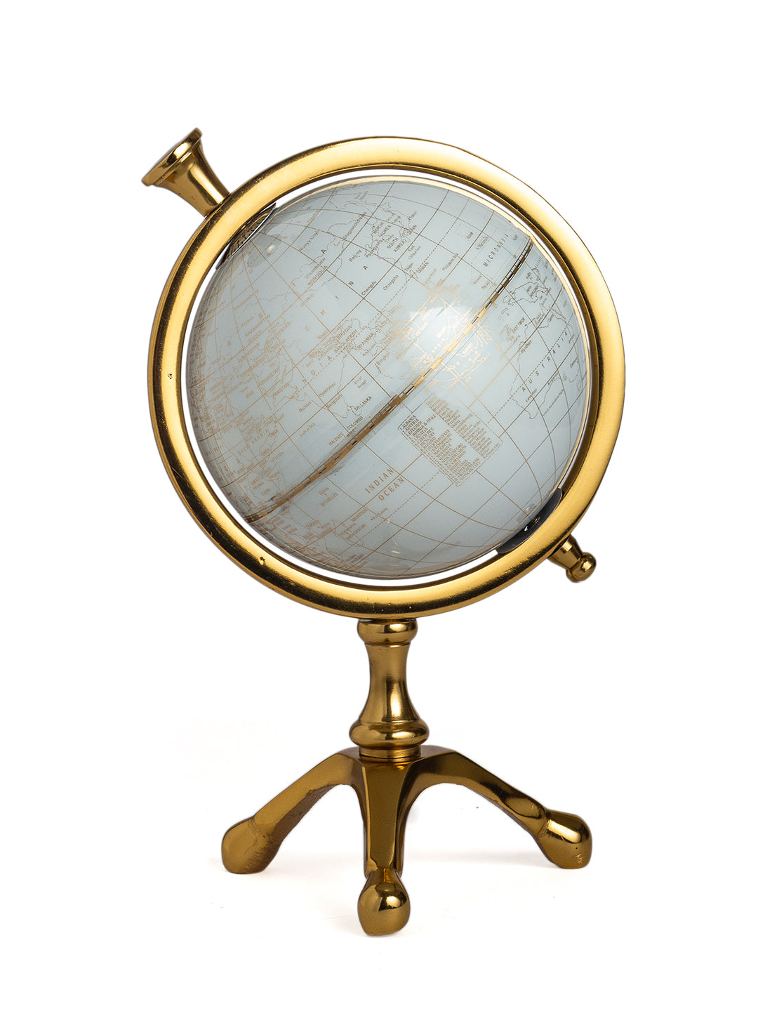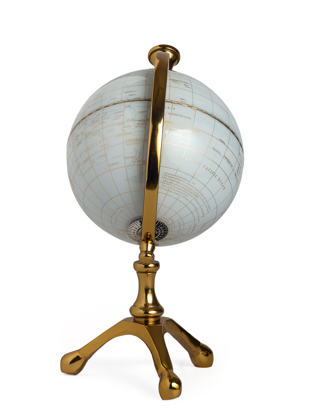 The Henry Gold Globe is the perfect accent for any room. It can be used as decorative or to fuel your curiosity. The white laminated globe with the tripod gold stand, is perfect on your study table or a coffee table book in your home or office.