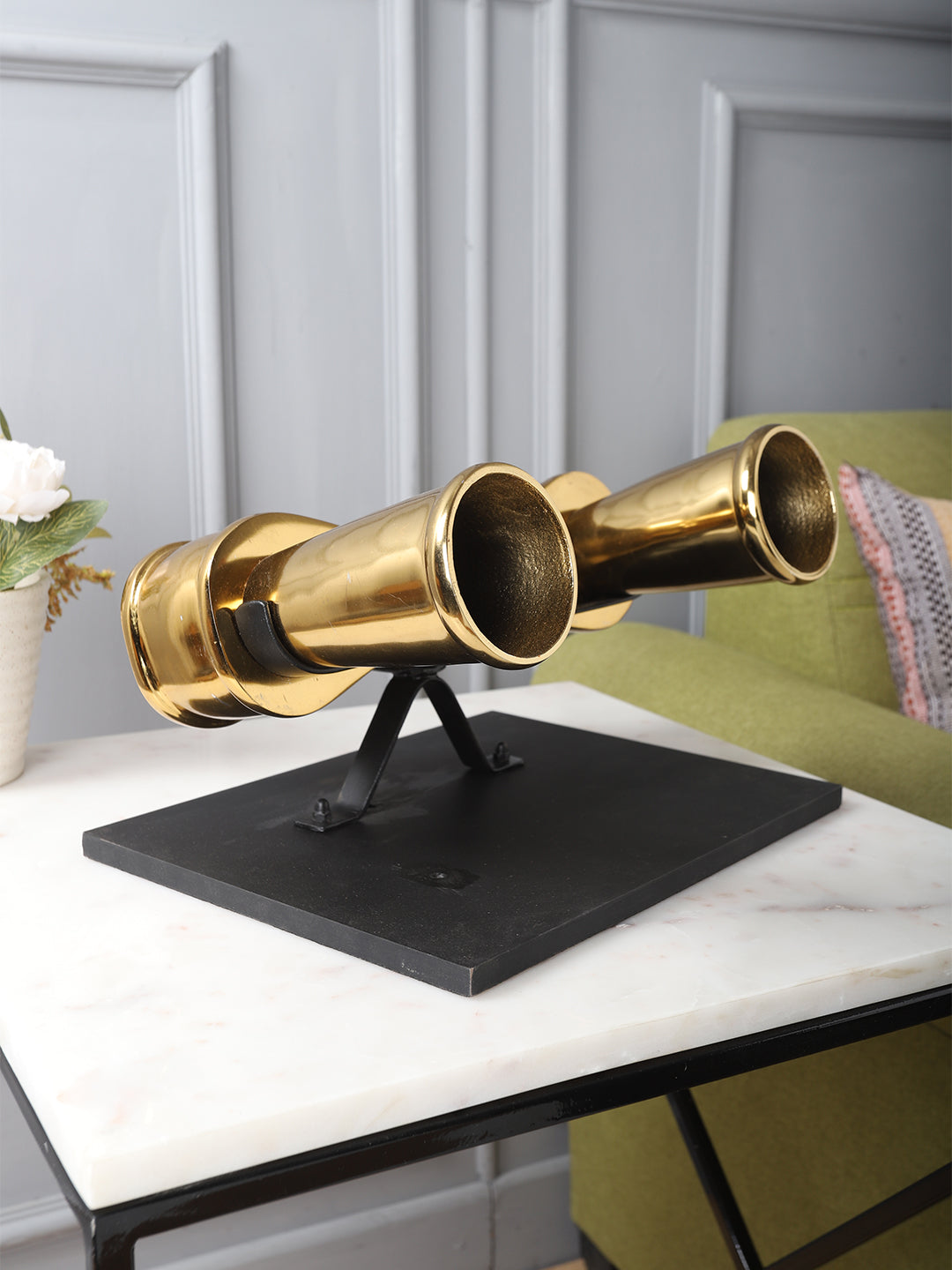 Be a trendsetter with our charming & quirky, Oversized Binoculars decorative accent with a mdf base. Intricately handcrafted, this Gold accent is the perfect addition to your living space.