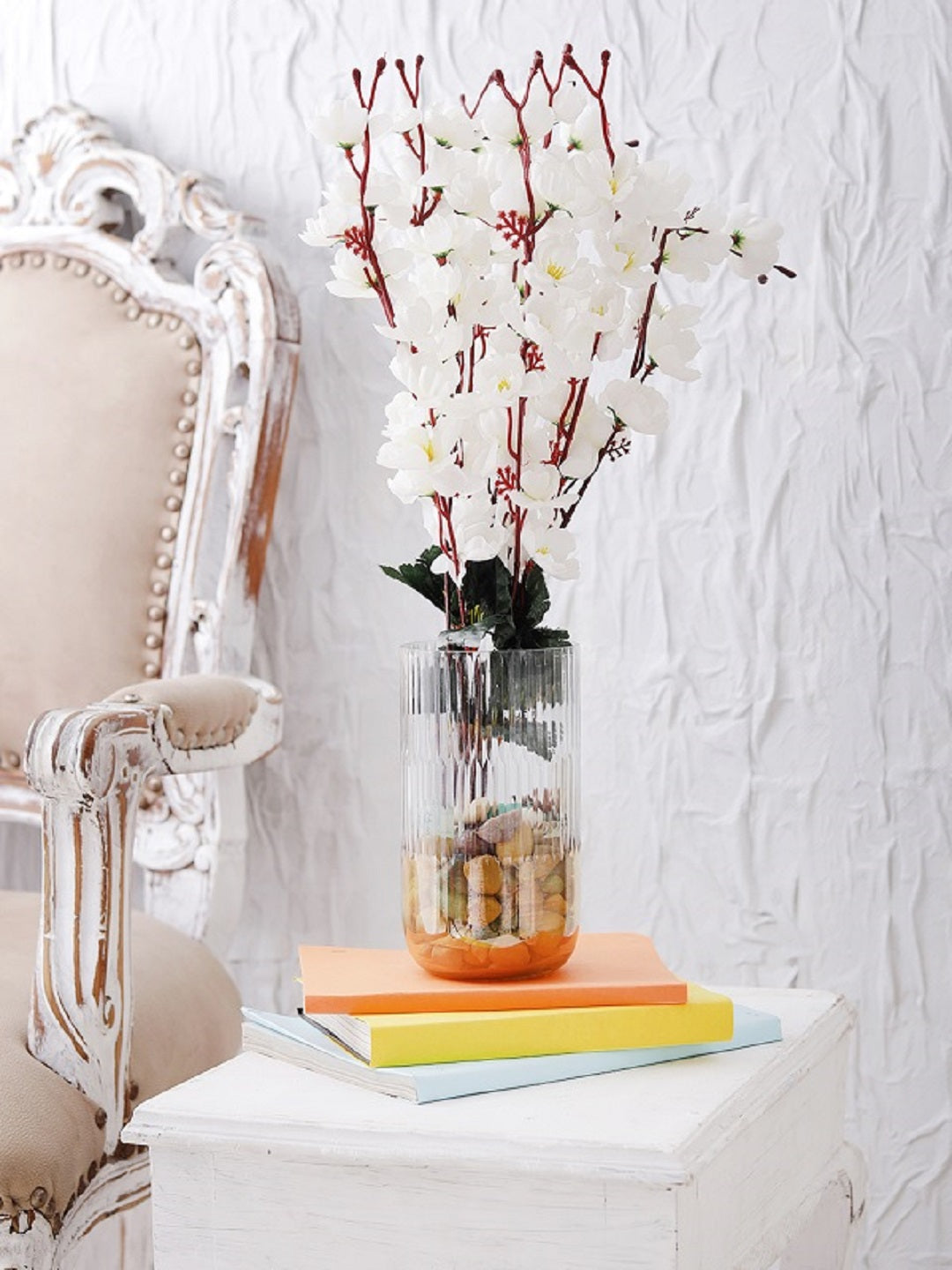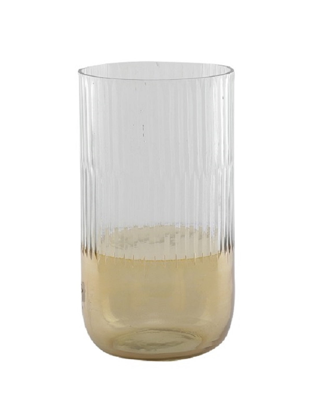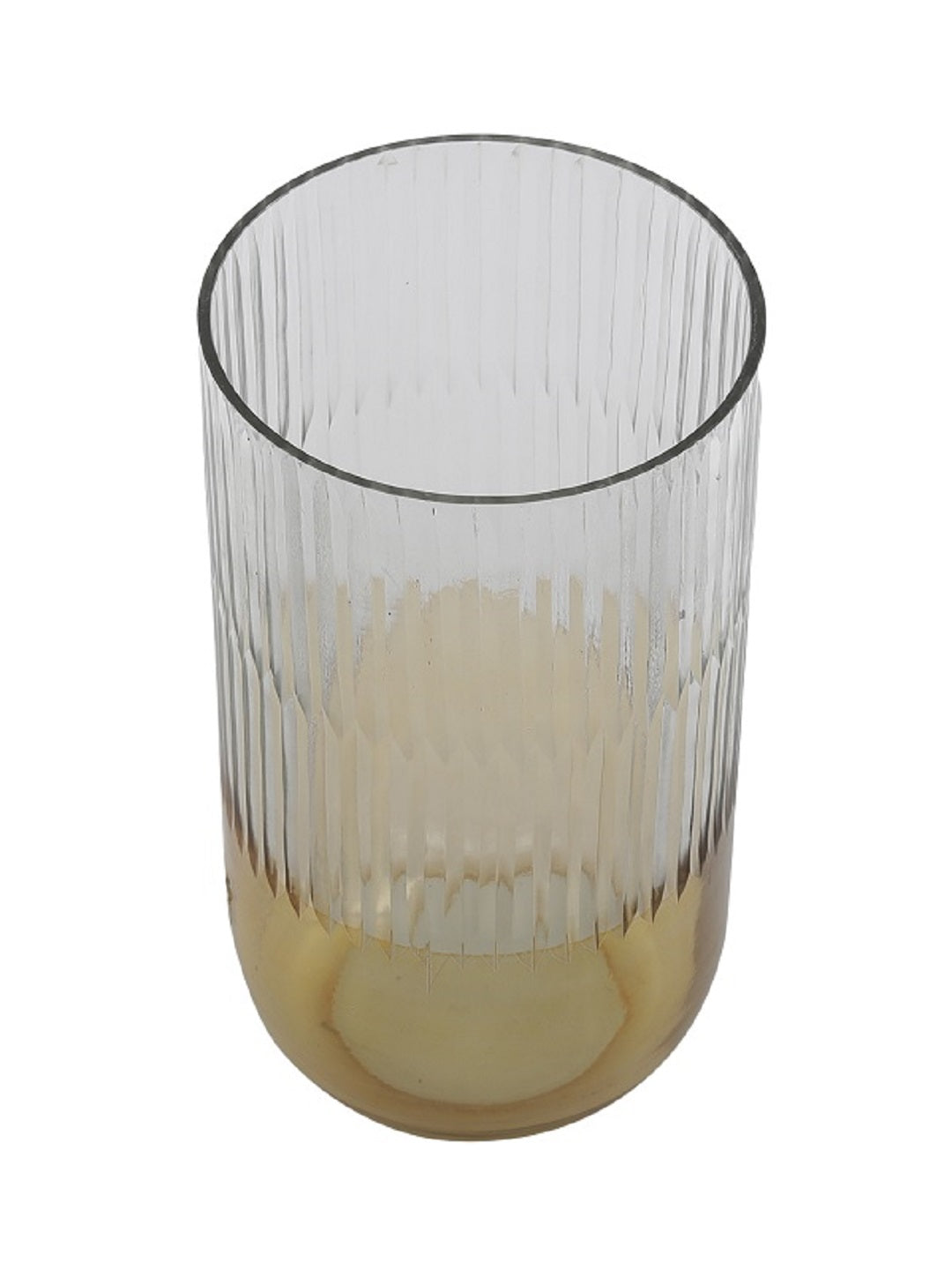 Add style & royalty with Sammsara's Inaya Glass Vase. The dual tone gold & clear finish, combines with the intricate line pattern to create the perfect story for your living space.