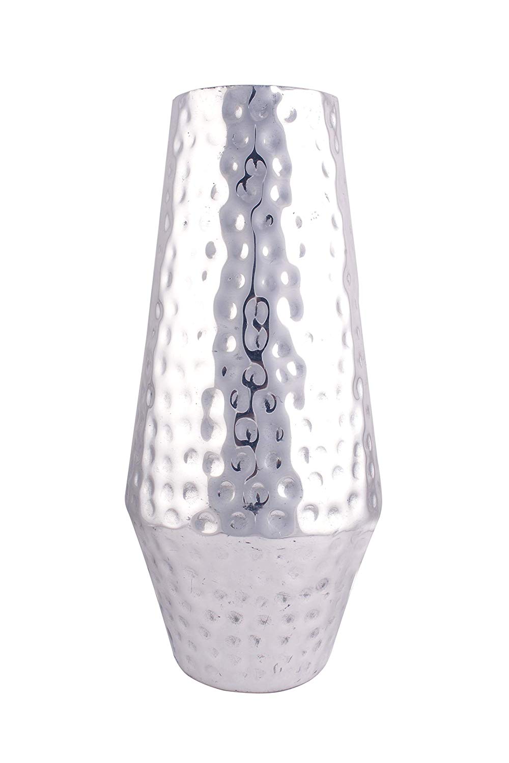 The Hammered pattern of this Vase, makes it a great addition to any living space. The handmade hammered pattern adds a touch of class & subtleness to the Vase. Use it with fresh or faux flowers or as an accent by itself.