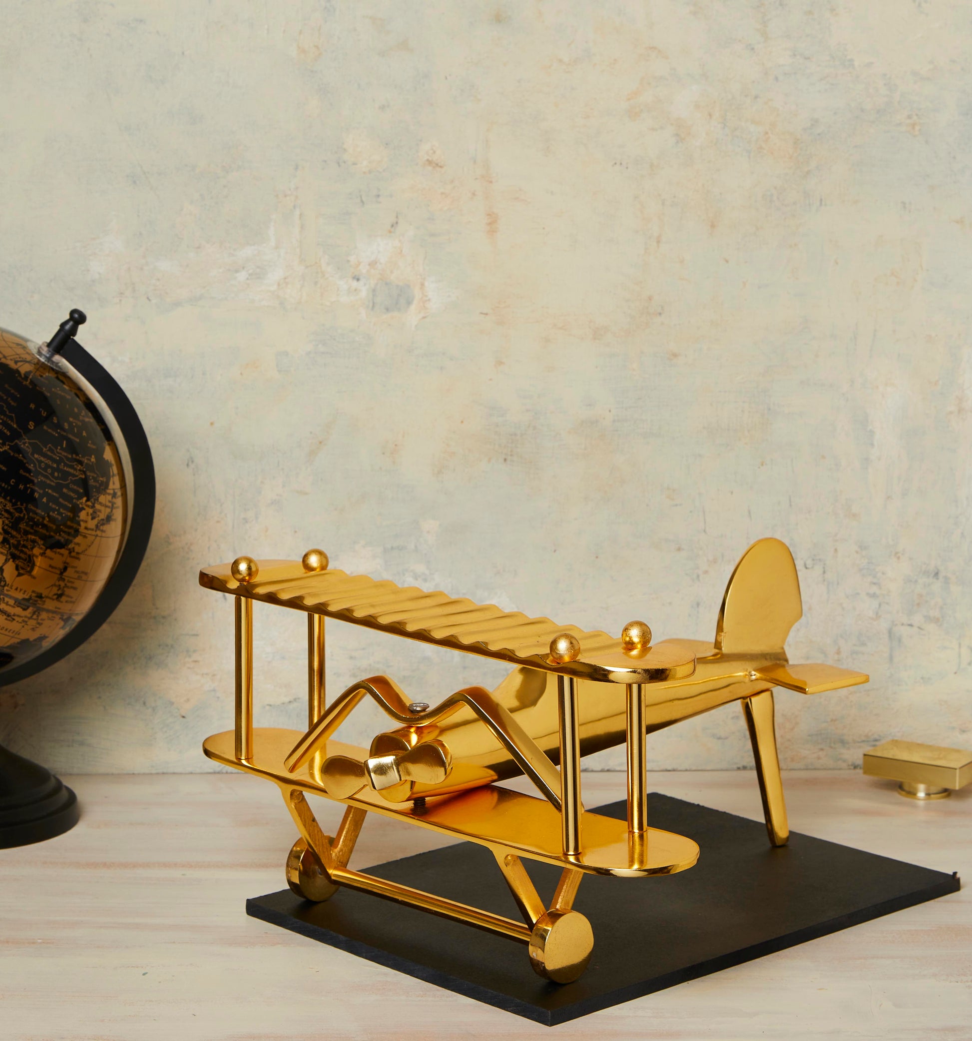 Be a trendsetter with our charming & quirky, oversized Vintage Aeroplane decorative accent with a mdf base. Intricately handcrafted, this Gold accent is the perfect addition to your living space.