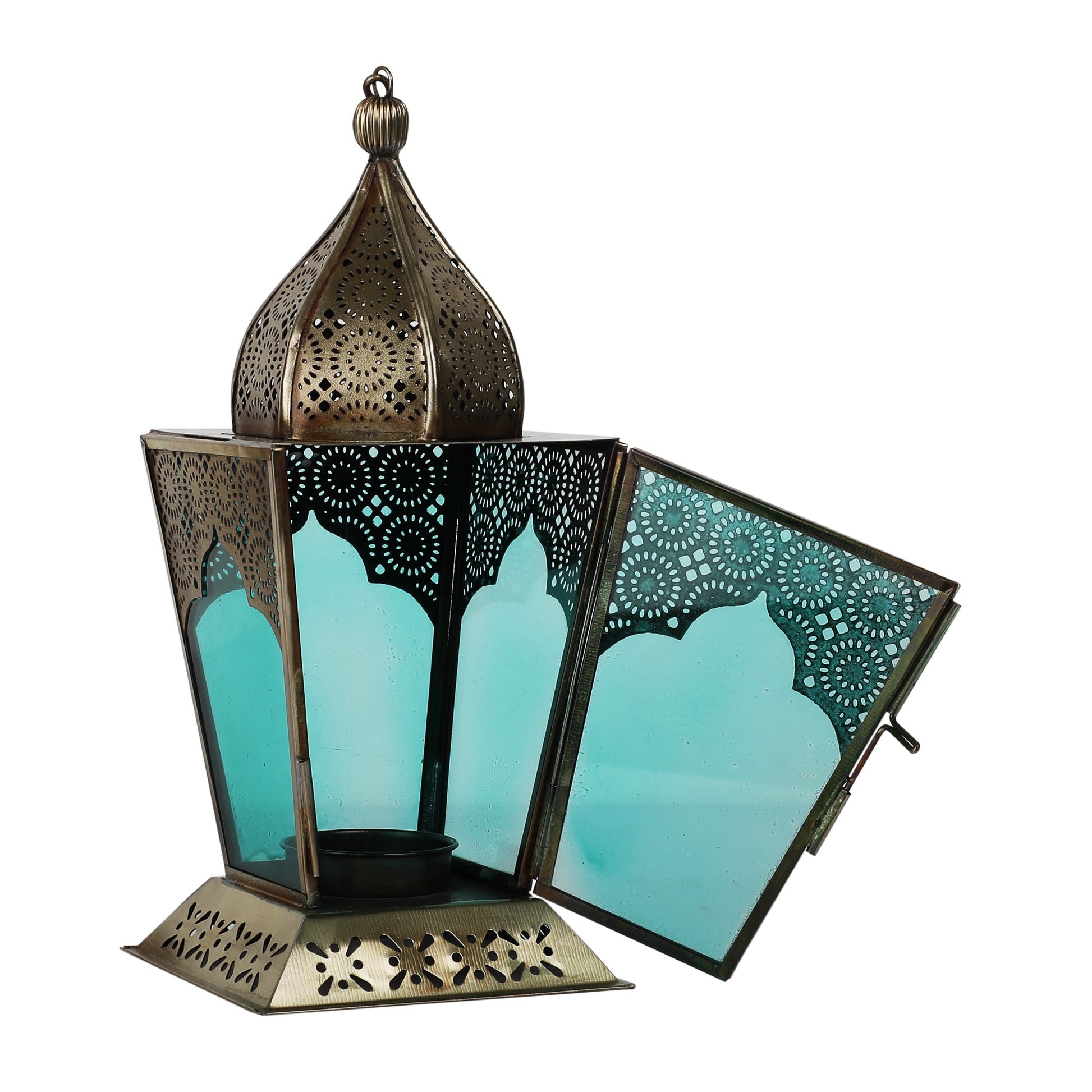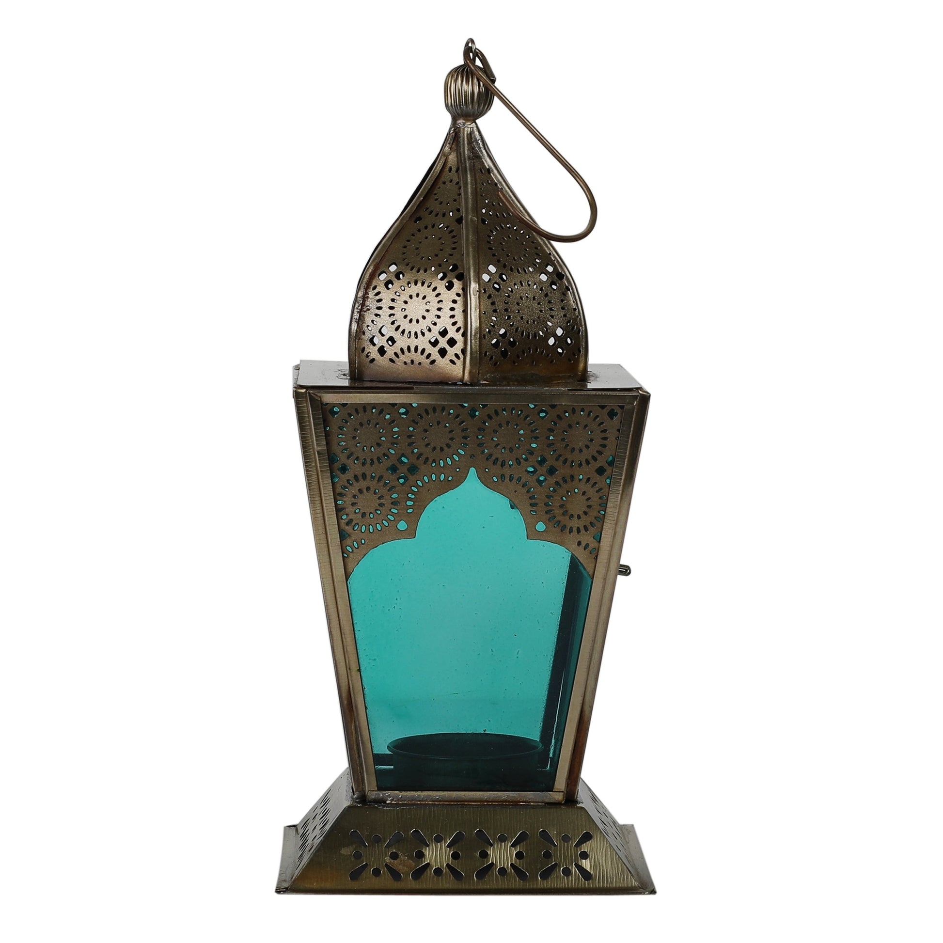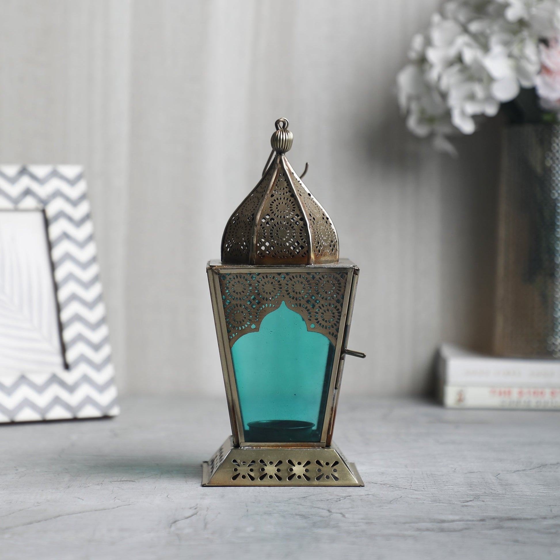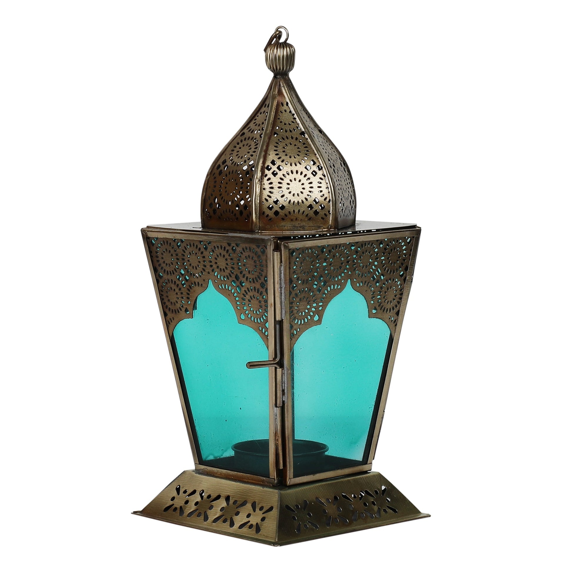 This Antique Brass Lantern is a beautiful accent for any living space. It's intricately patterned metal top with glass creates an eclectic mix of timeless design with functionality. Perfect for a multitude of uses. Works both with pillar candles & T-light or with flowers & Potpourri. Perfect for indoors/outdoors.
