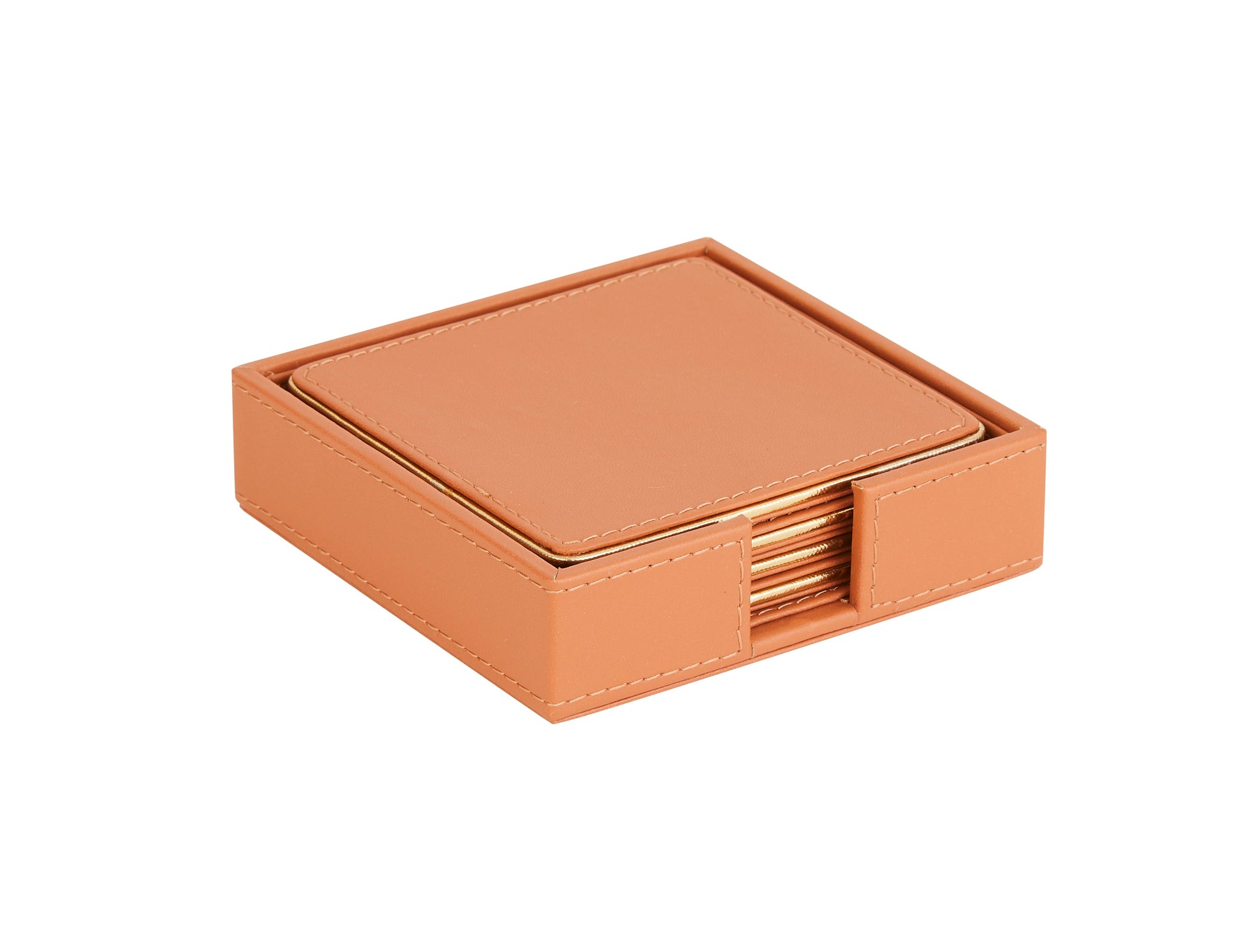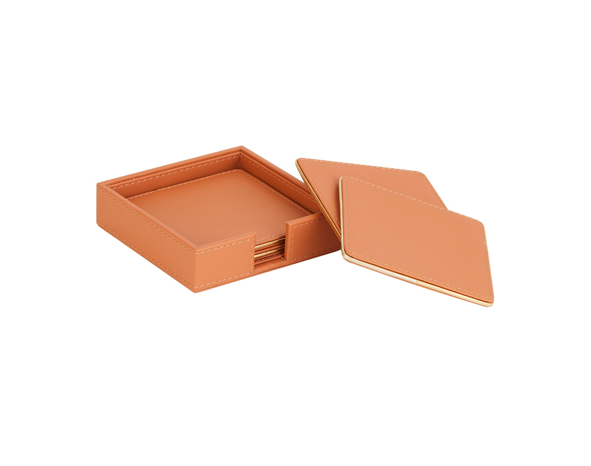 Lydia Tan & Gold PU Leather Coaster Set of 4