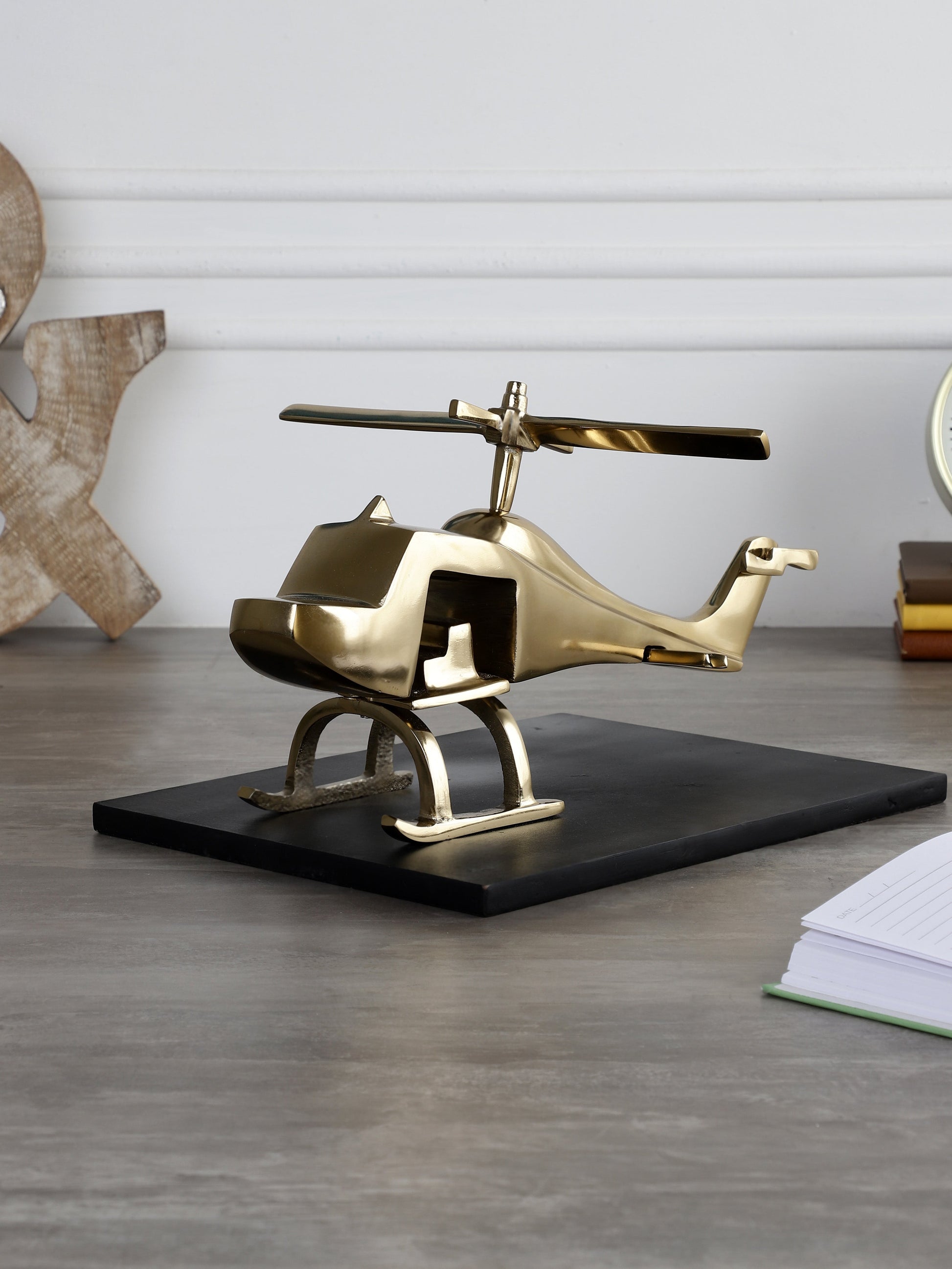 Be a trendsetter with our charming & quirky, oversized Vintage Helicopter decorative accent with a mdf base. Intricately handcrafted, this Gold accent is the perfect addition to your living space.