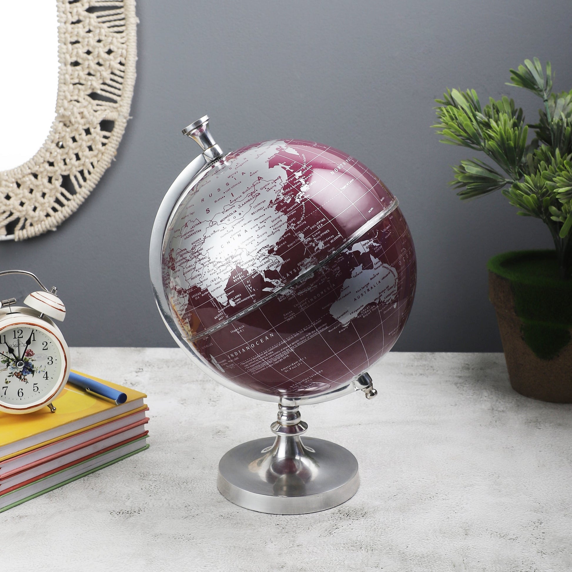 The 'Berlin' laminated maroon globe is the perfect accent for your living space. The dual silver & maroon globe with a round stand is sure to add character & style to any room. Handcrafted intricately, this accent will enhance the look & feel of any room.