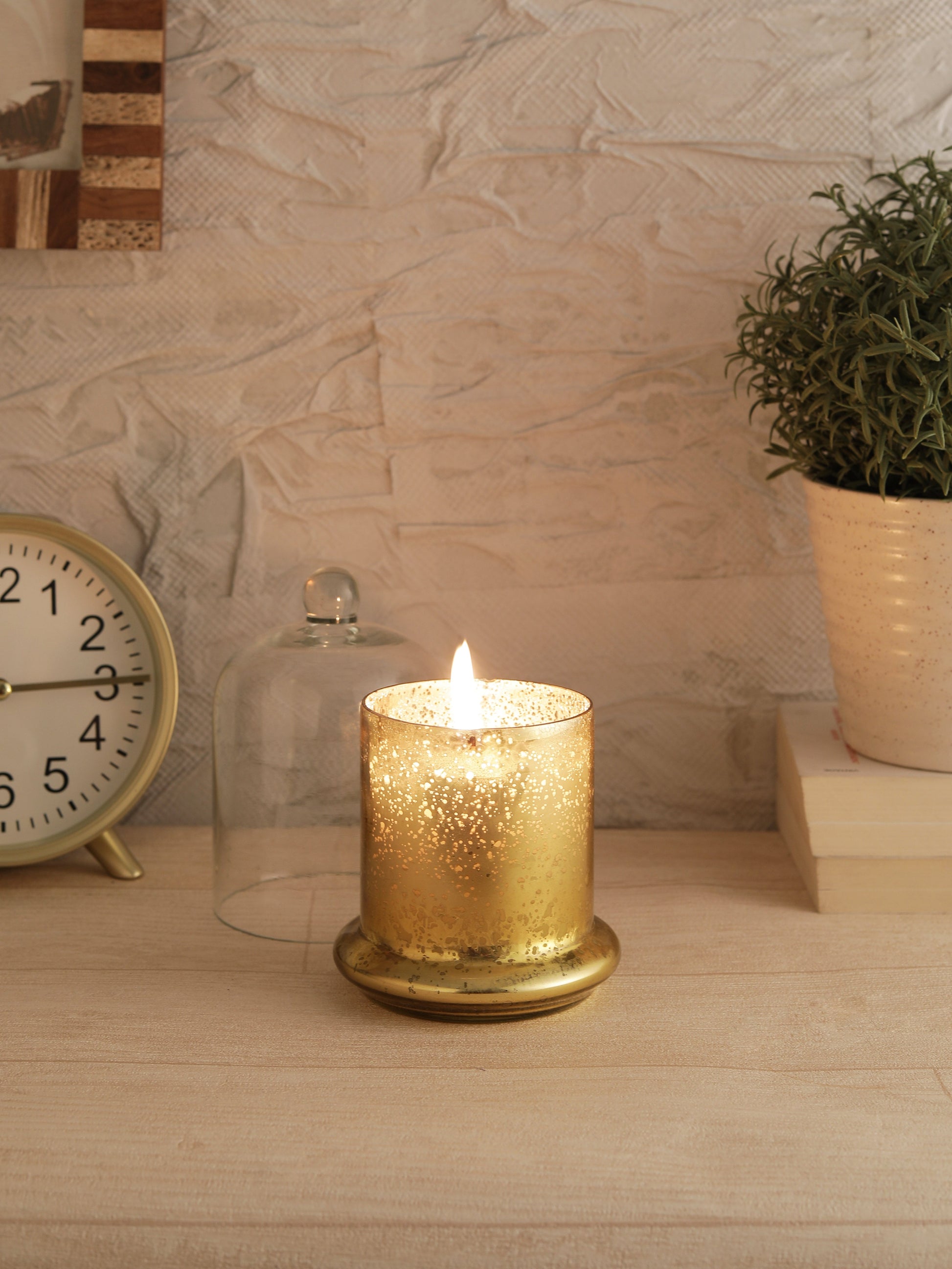 Indulge in the everlasting fragrance of this scented 'Bell Jar' candle. The 'Egyptian Rose' fragrance will enhance the mood & setting of your room. Intricately, handcrafted in glass, with an elegant gold texture, this candle will surely add to the story of your living space.