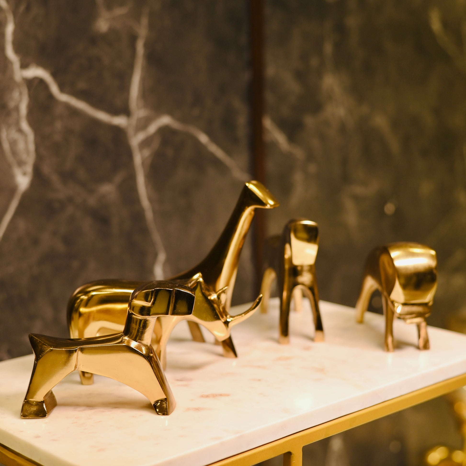 Be a trendsetter with our charming & quirky, mini animal decorative gold accents set of 5. The set includes- an elephant, horse, giraffe, rhino & dog.Intricately handcrafted, this Origami inspired Gold accent set is the perfect addition to your living space.