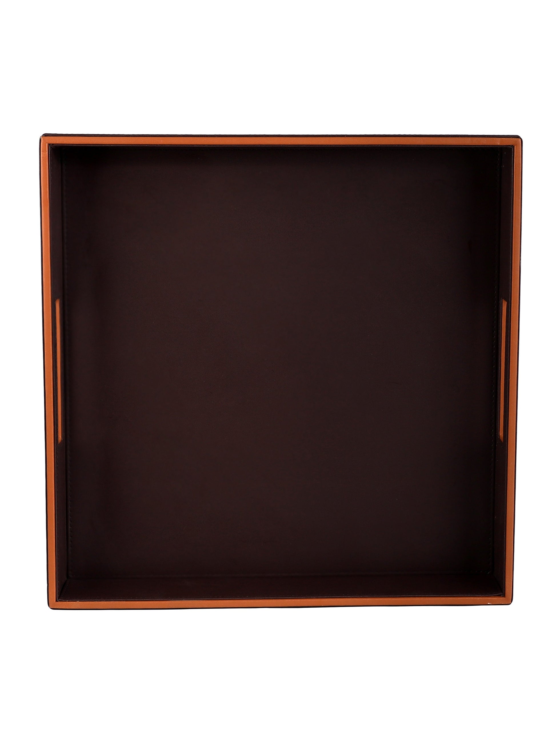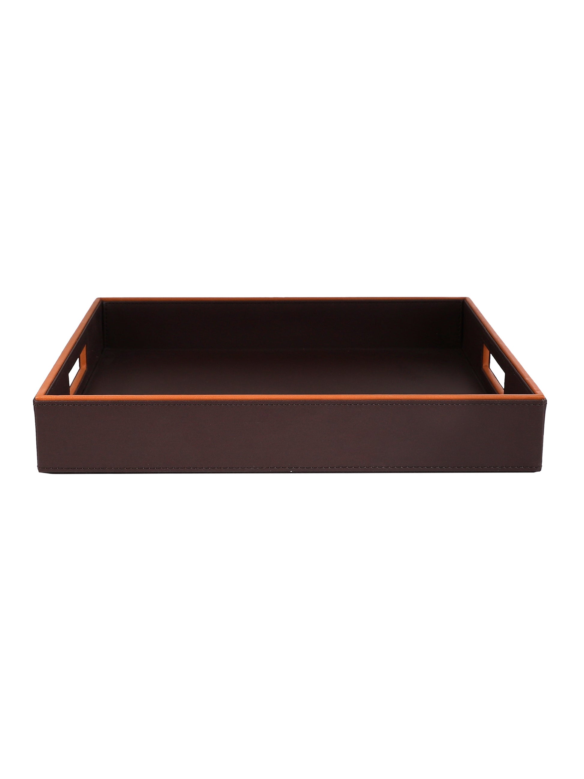 The clean & suave lines of this dual finish serving tray make it an elegant addition for any living space. It's dual - Tan & Brown finish make it an eclectic marriage of design & usability. The sturdy handles make it a great serving tray & work well to serve any items you may desire, or as a paper tray.