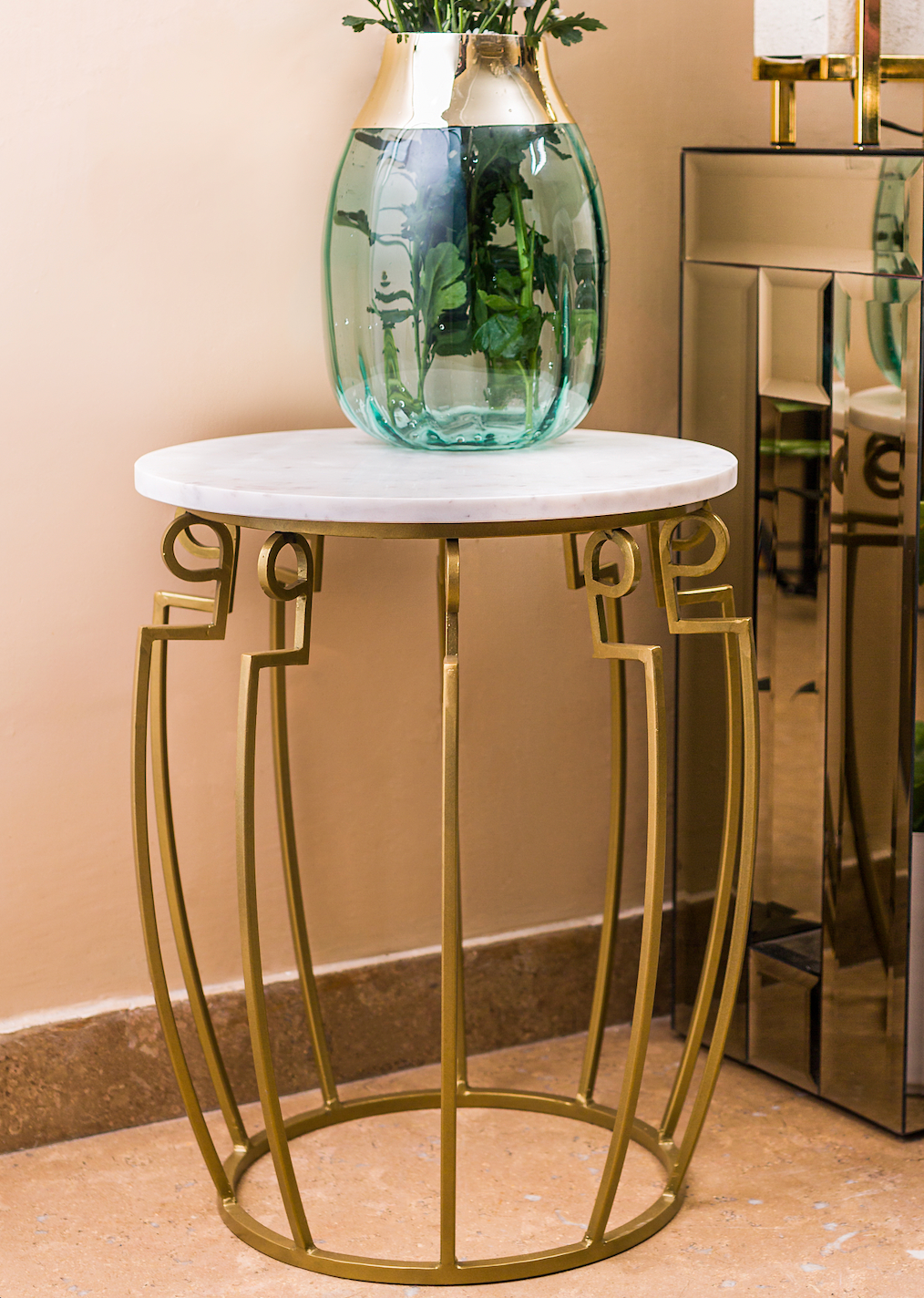 Add charm & style to your living space with the 'Morocco' Gold Table. The dual tone white & gold finish of this table will enhance the look & feel of any room. Perfect for any living space, this side table can be used to hold decorative accents or as a night stand.