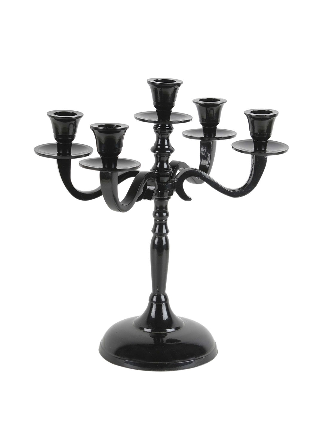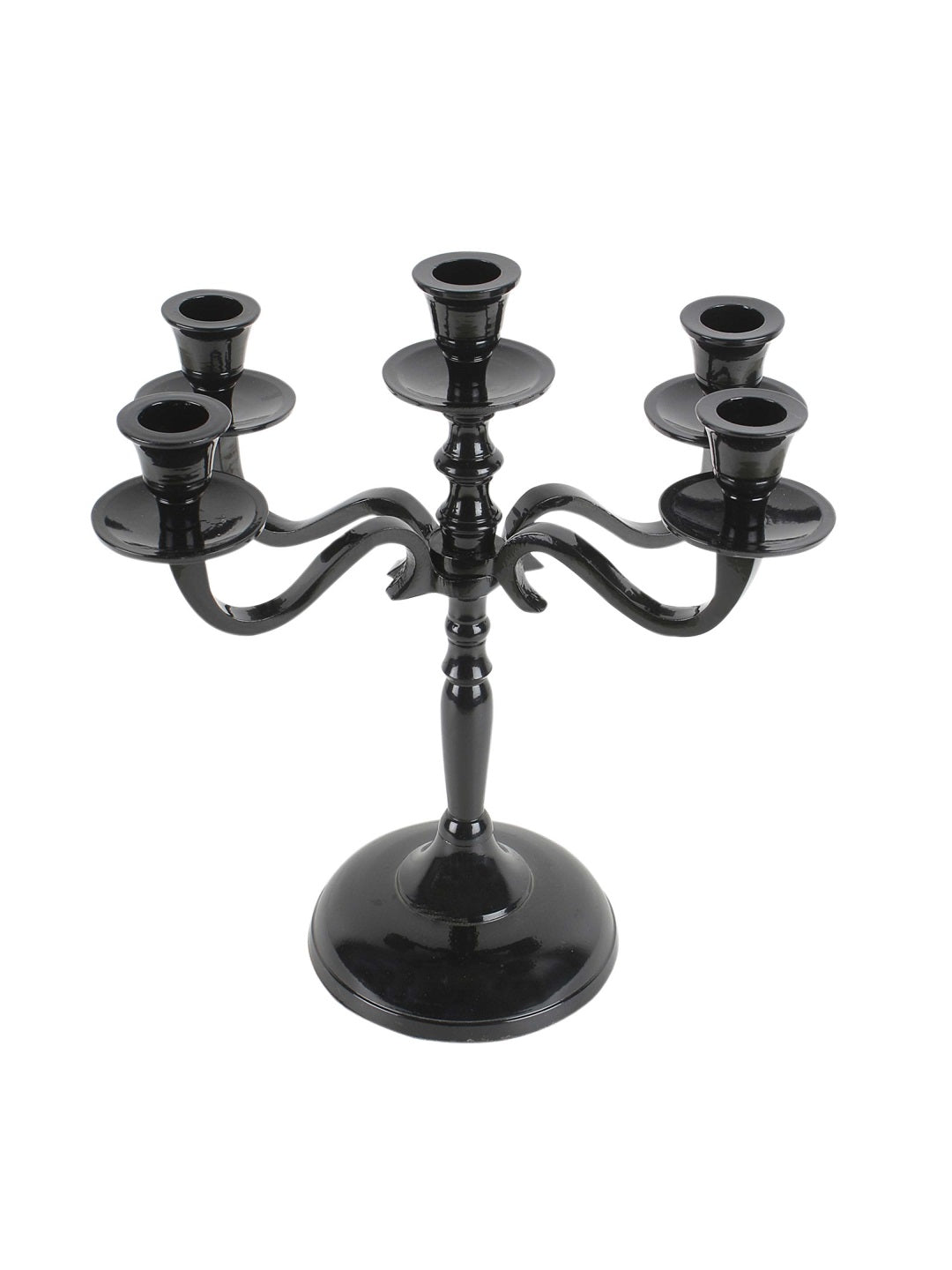 SAMMSARA introduces an elegant 5 lite candelabra. The black glossy finish enhances the elegance of its sleek shape. Quintessential decor for living space/central table/festival, creating a magnificent look.