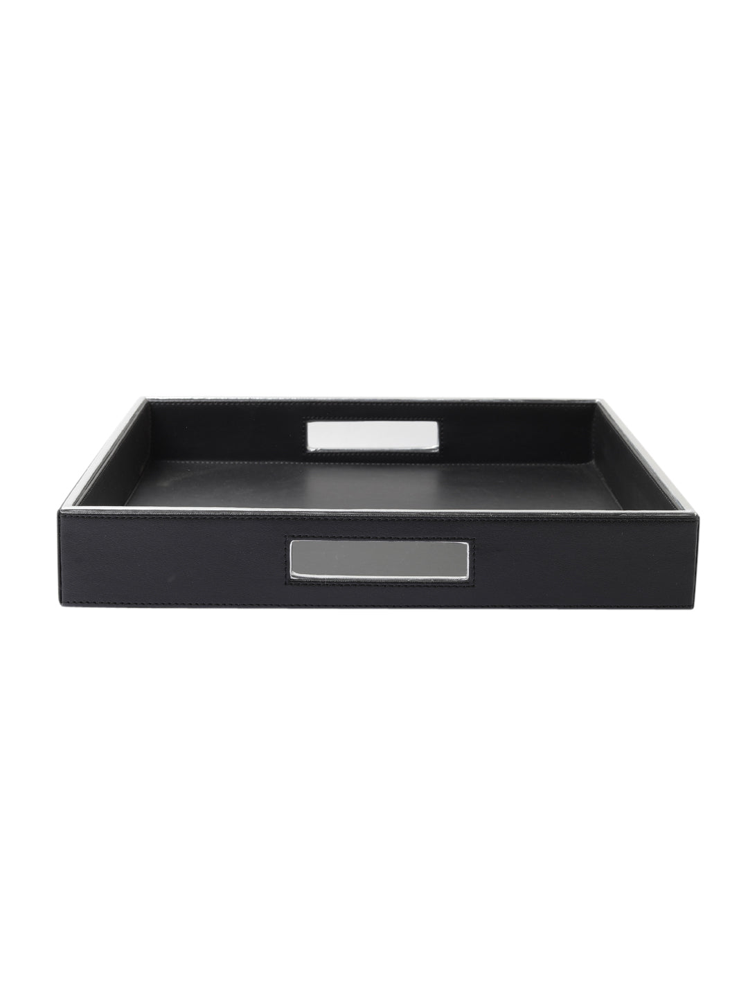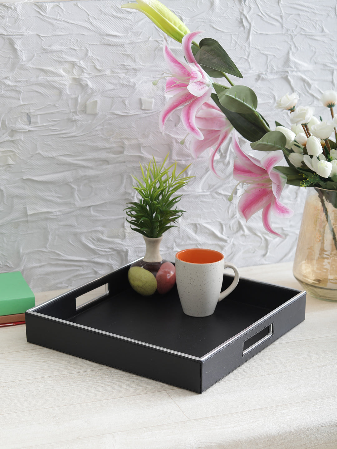 The clean & save lines of this dual finish serving tray make it an elegant addition for any living space. It's dual - blue & gold finish make it an eclectic marriage of design and usability. The sturdy handles make it great a serving tray & works well to serve any items you may desire, or as a paper tray.